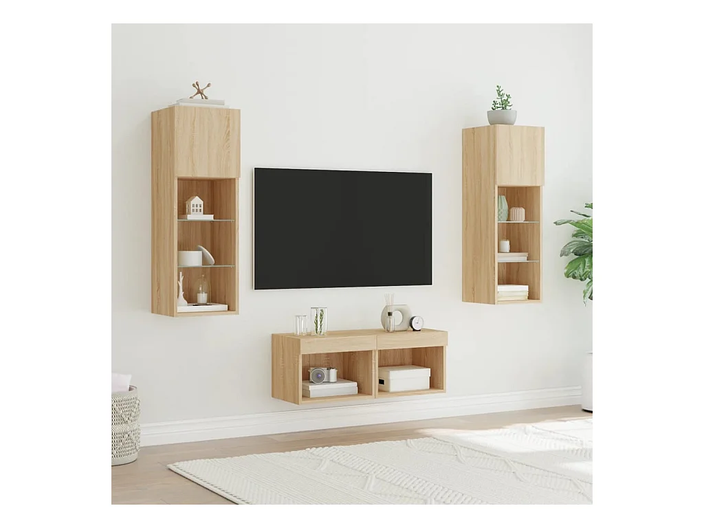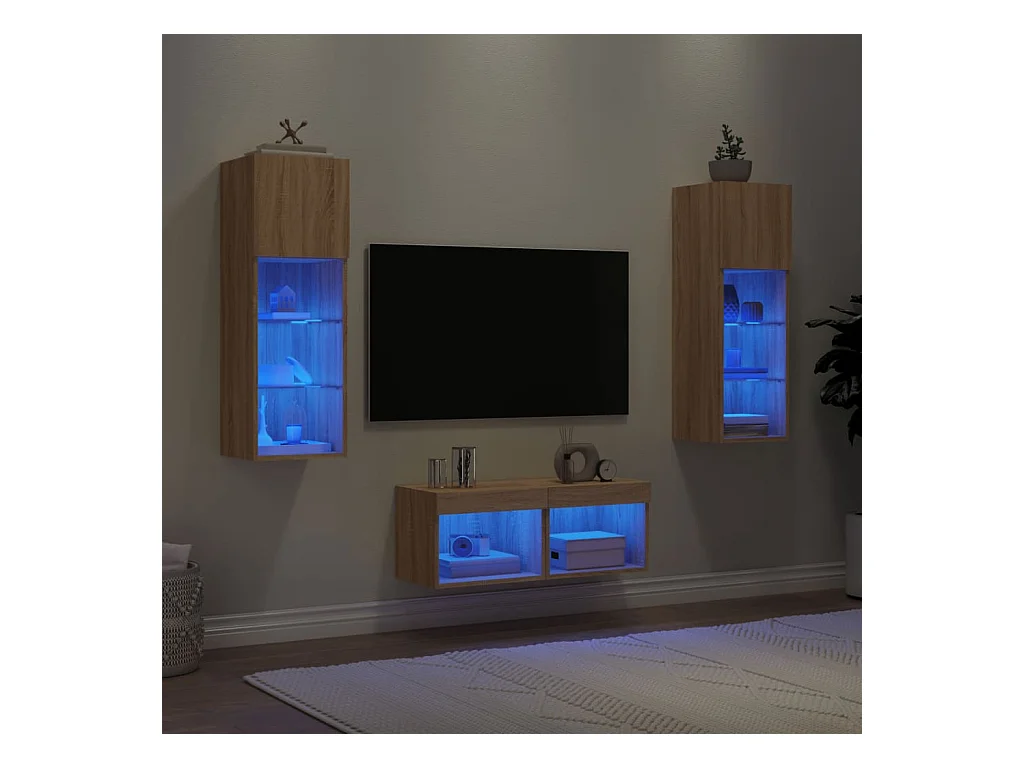 Meuble TV muraux 4 pcs avec lumières LED chêne sonoma