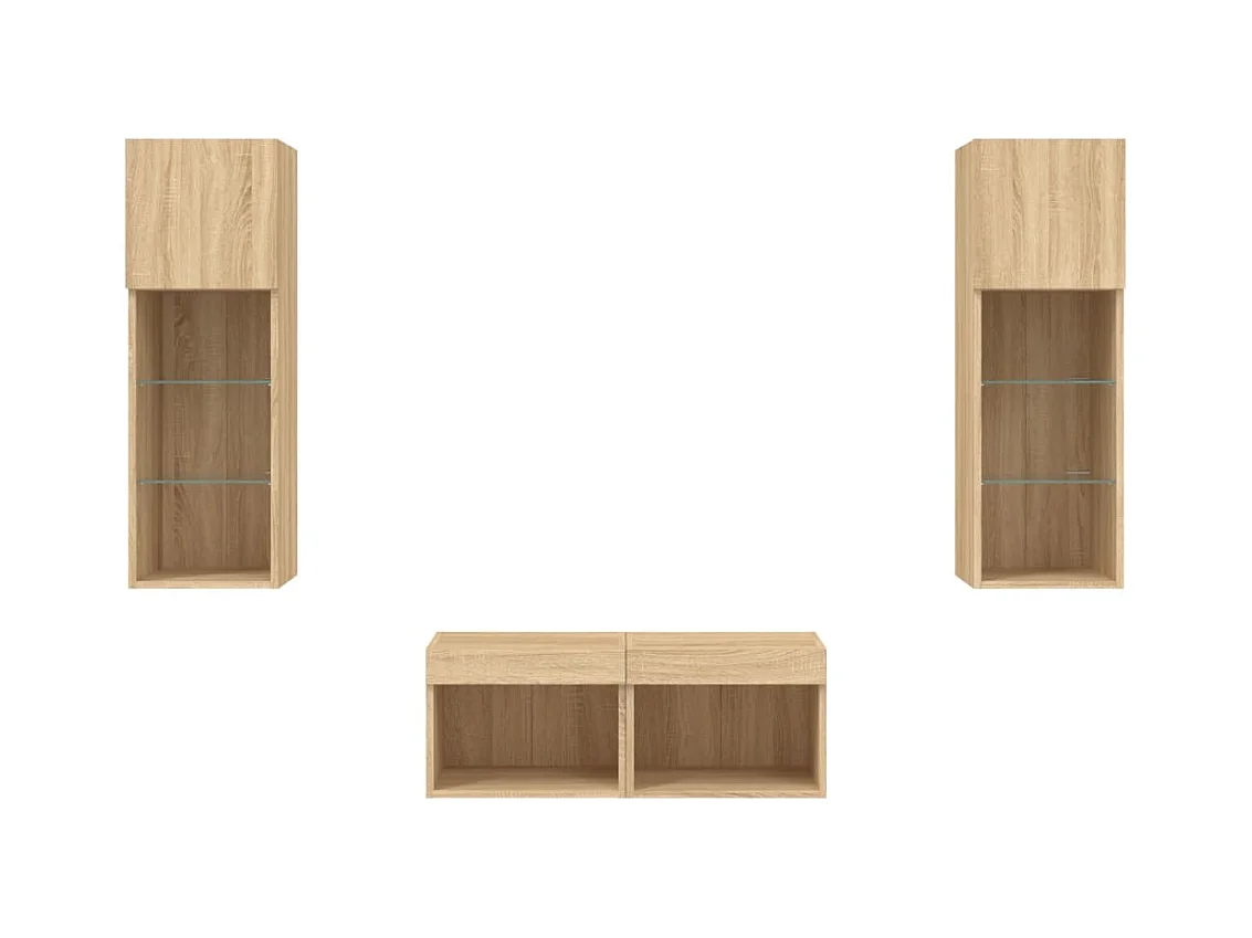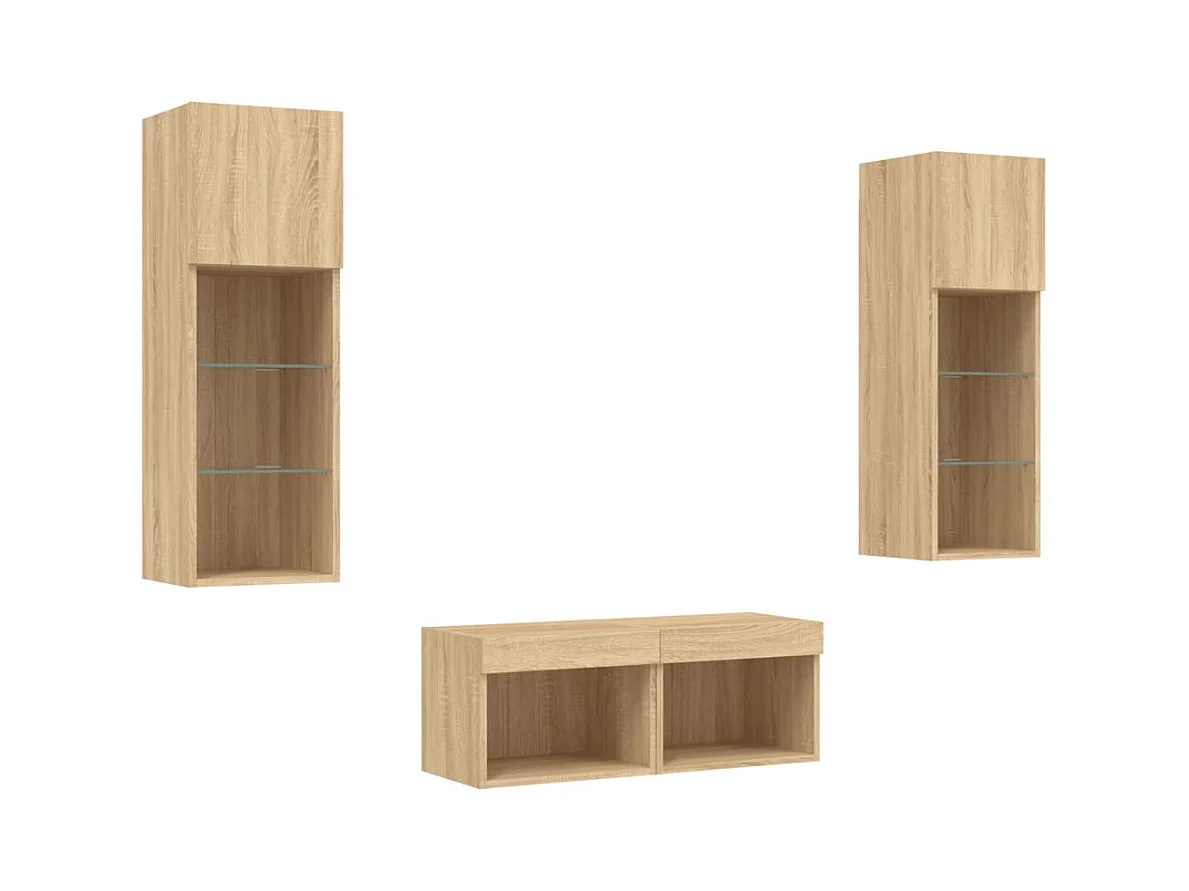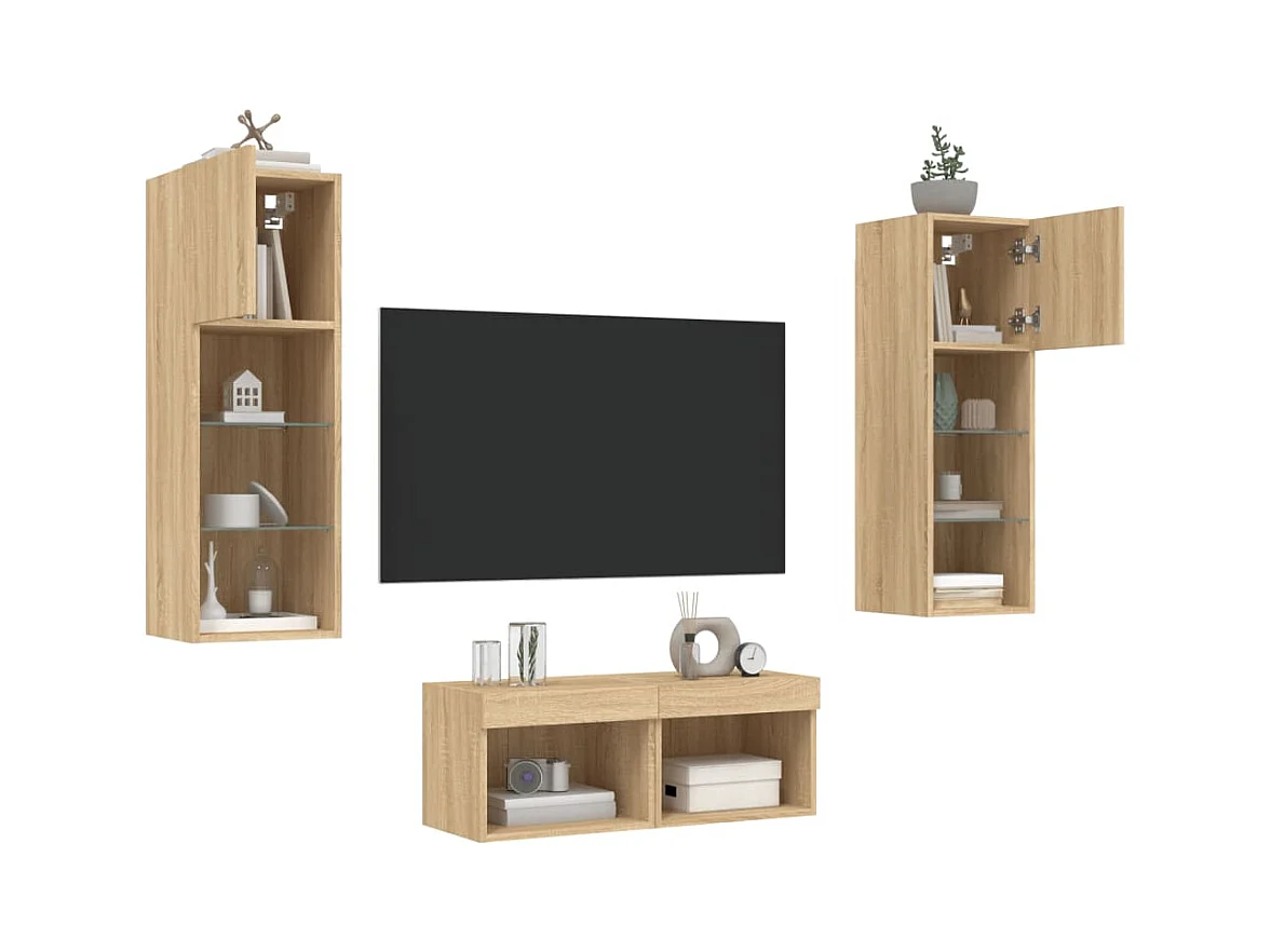 Unités murales TV avec LED 4 pcs chêne sonoma bois d'ingénierie