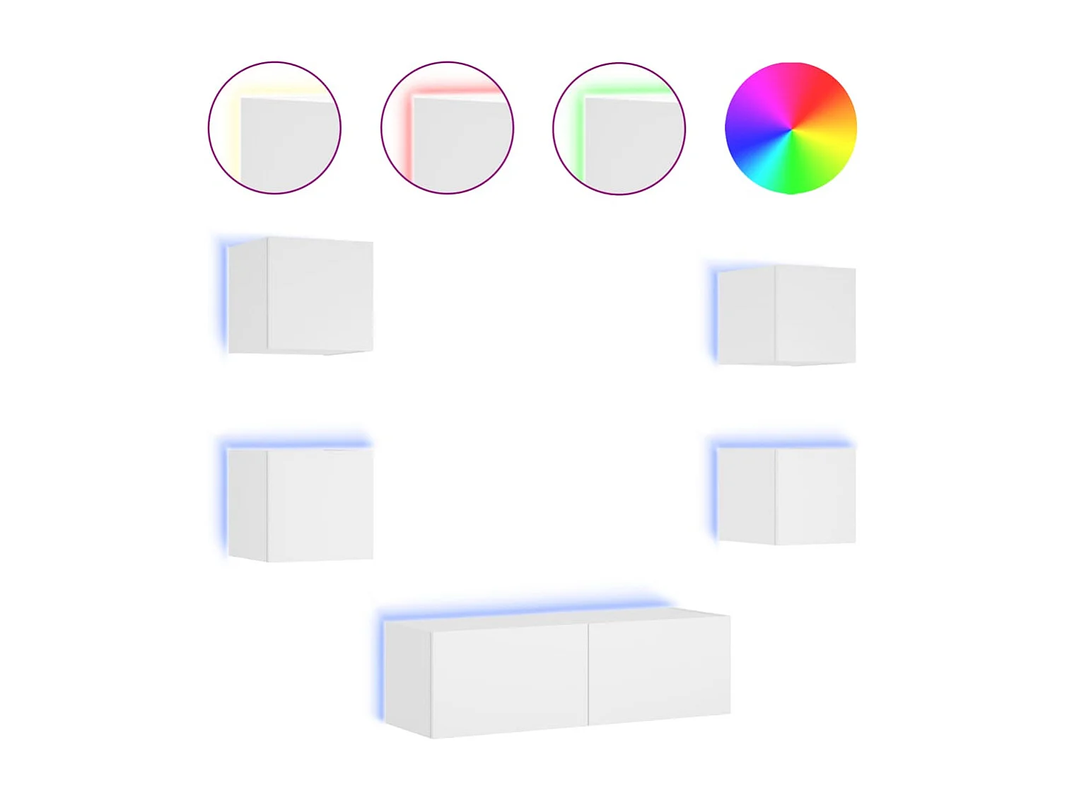 Meuble TV muraux 5 pcs avec lumières LED blanc