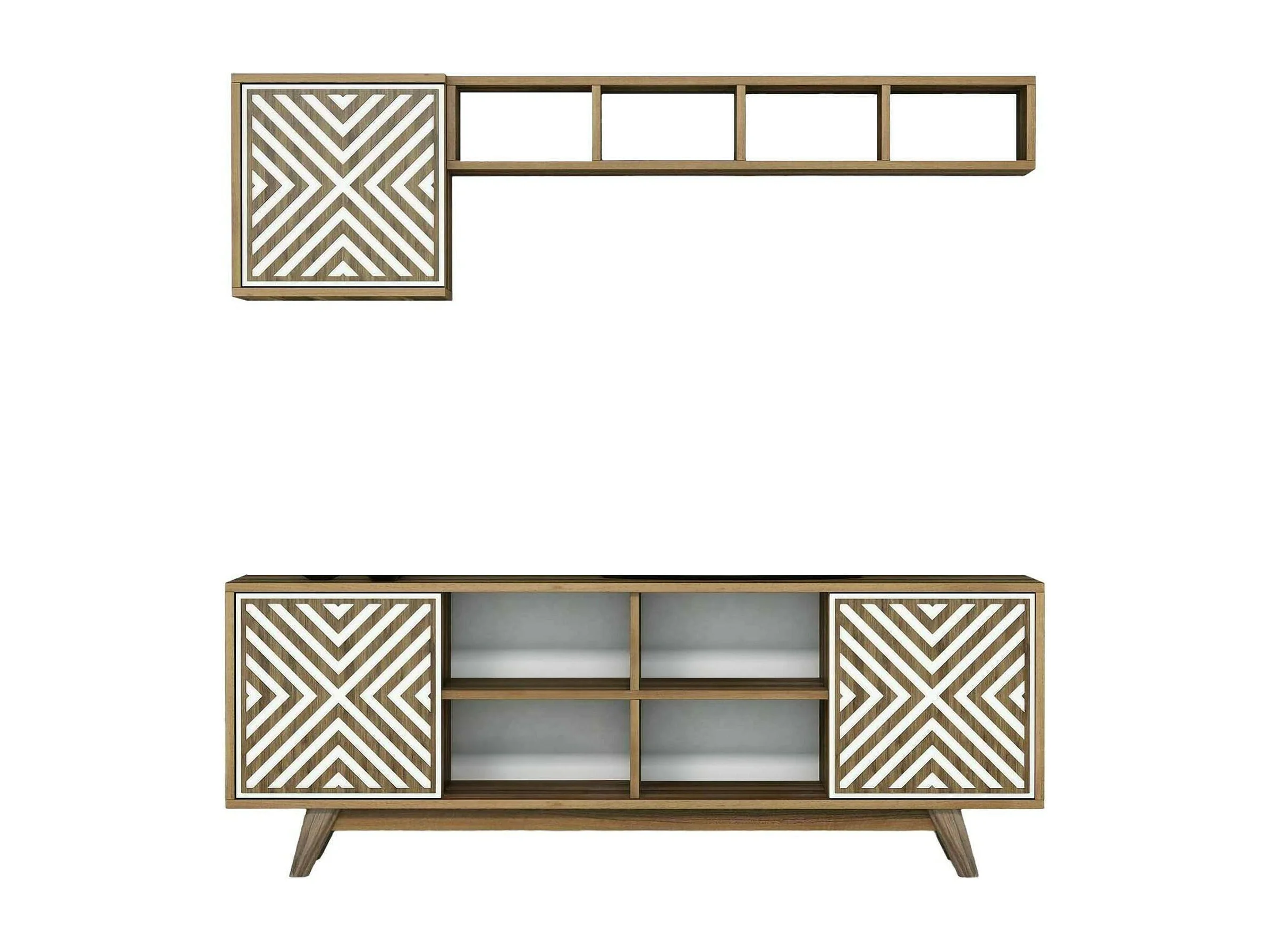 Meuble TV Nair, Buffet de salon, Armoire basse pour TV, Base murale de rangement, 160x35h56 cm, Noyer et Blanc