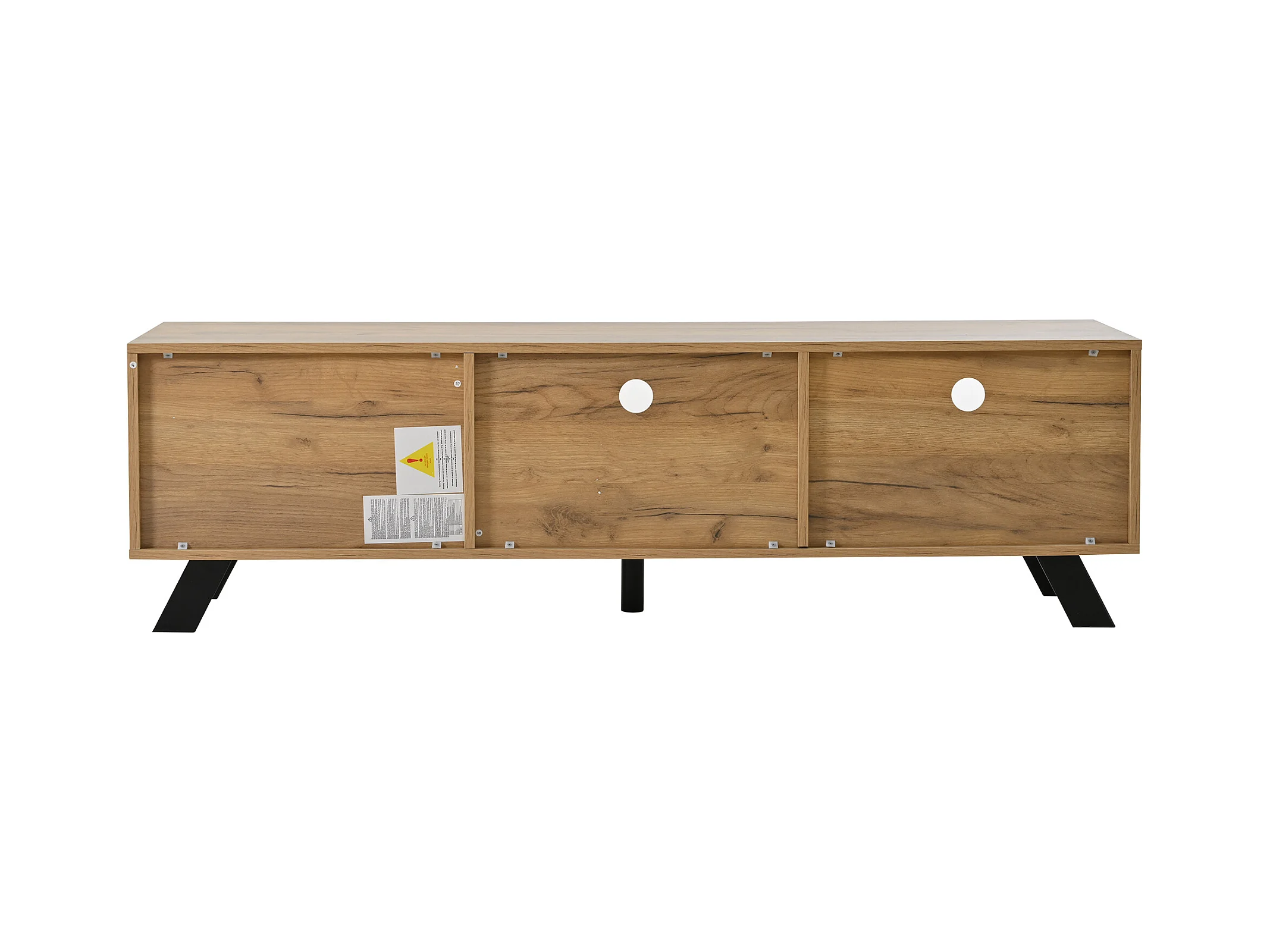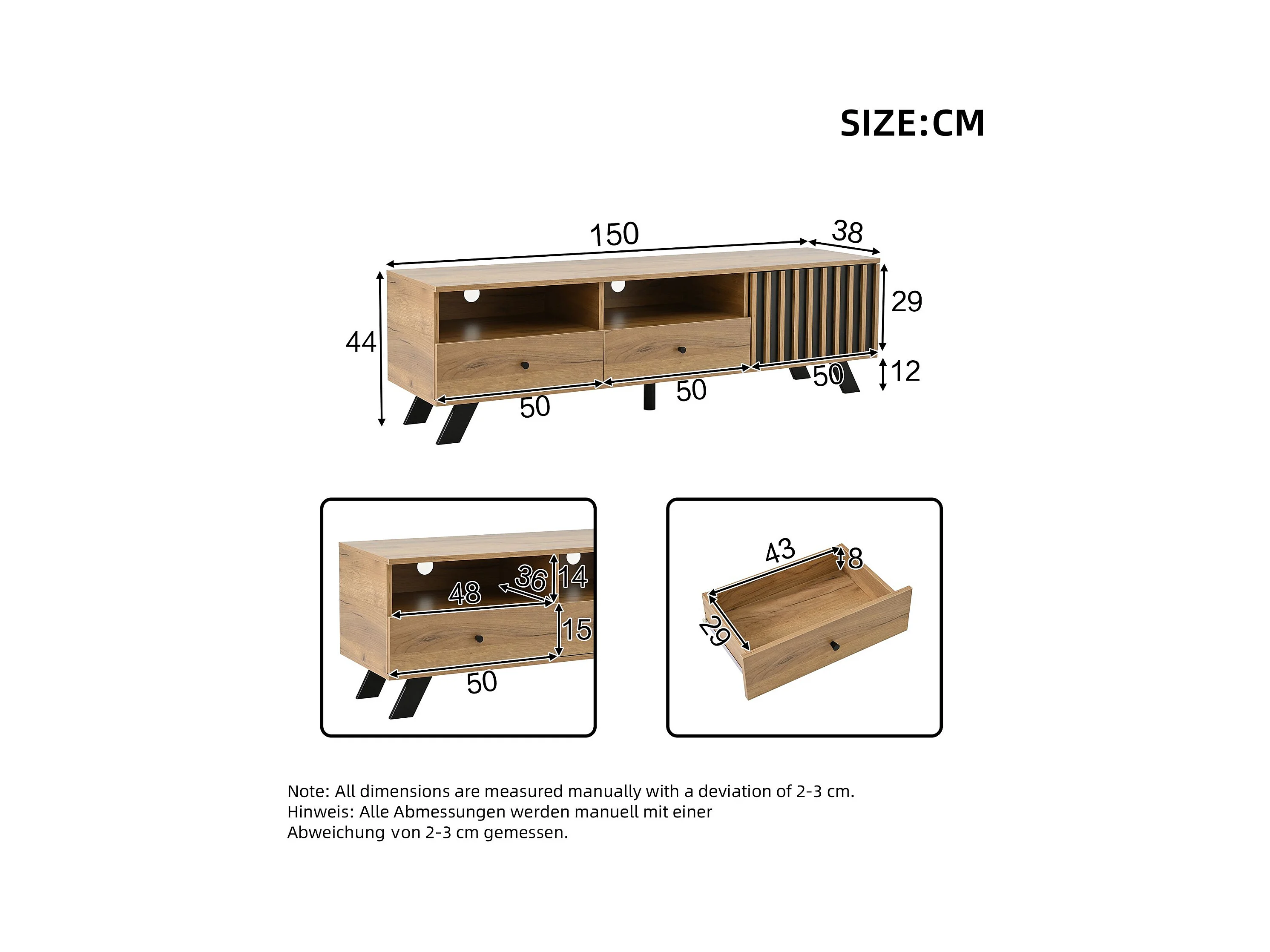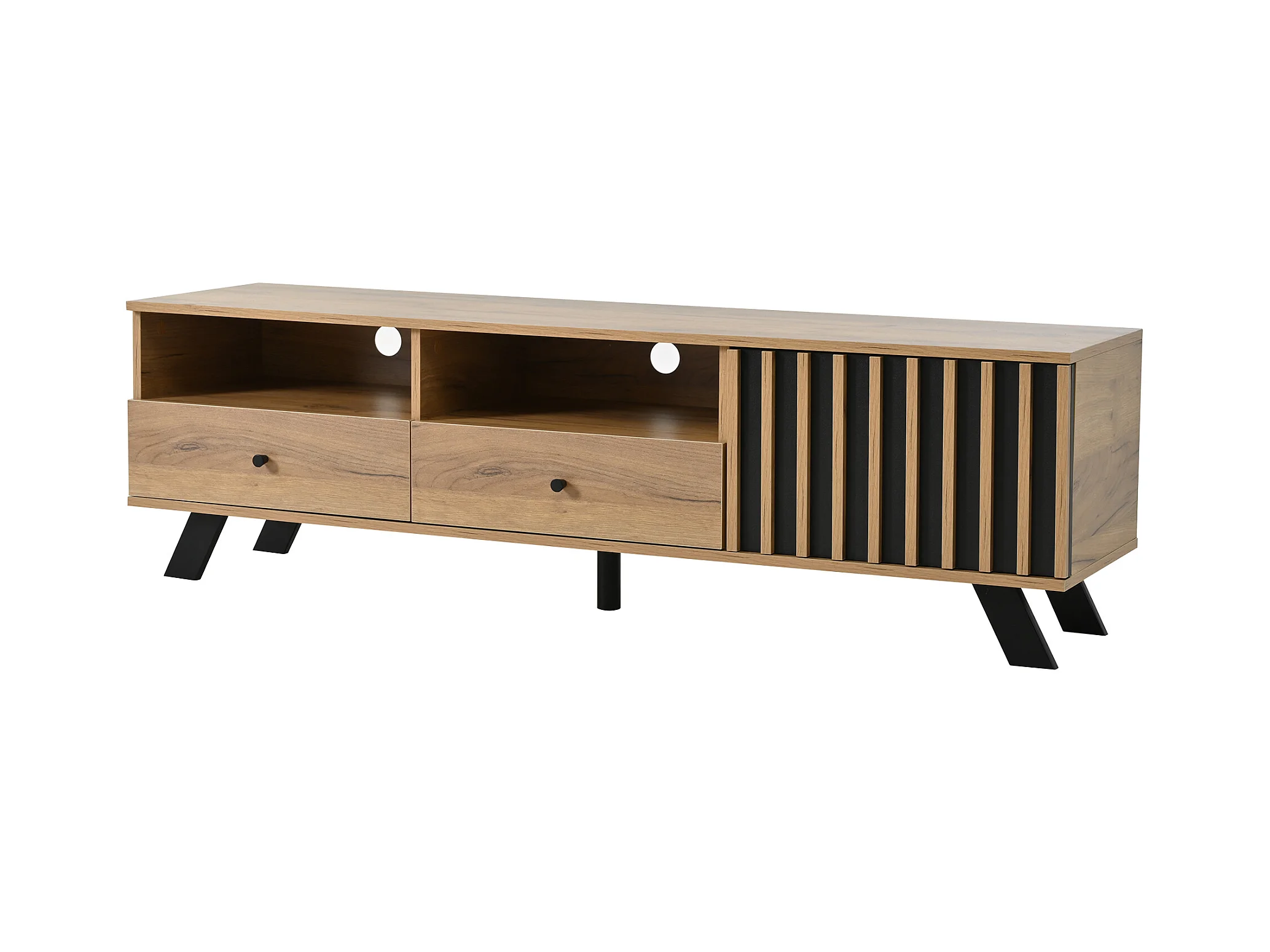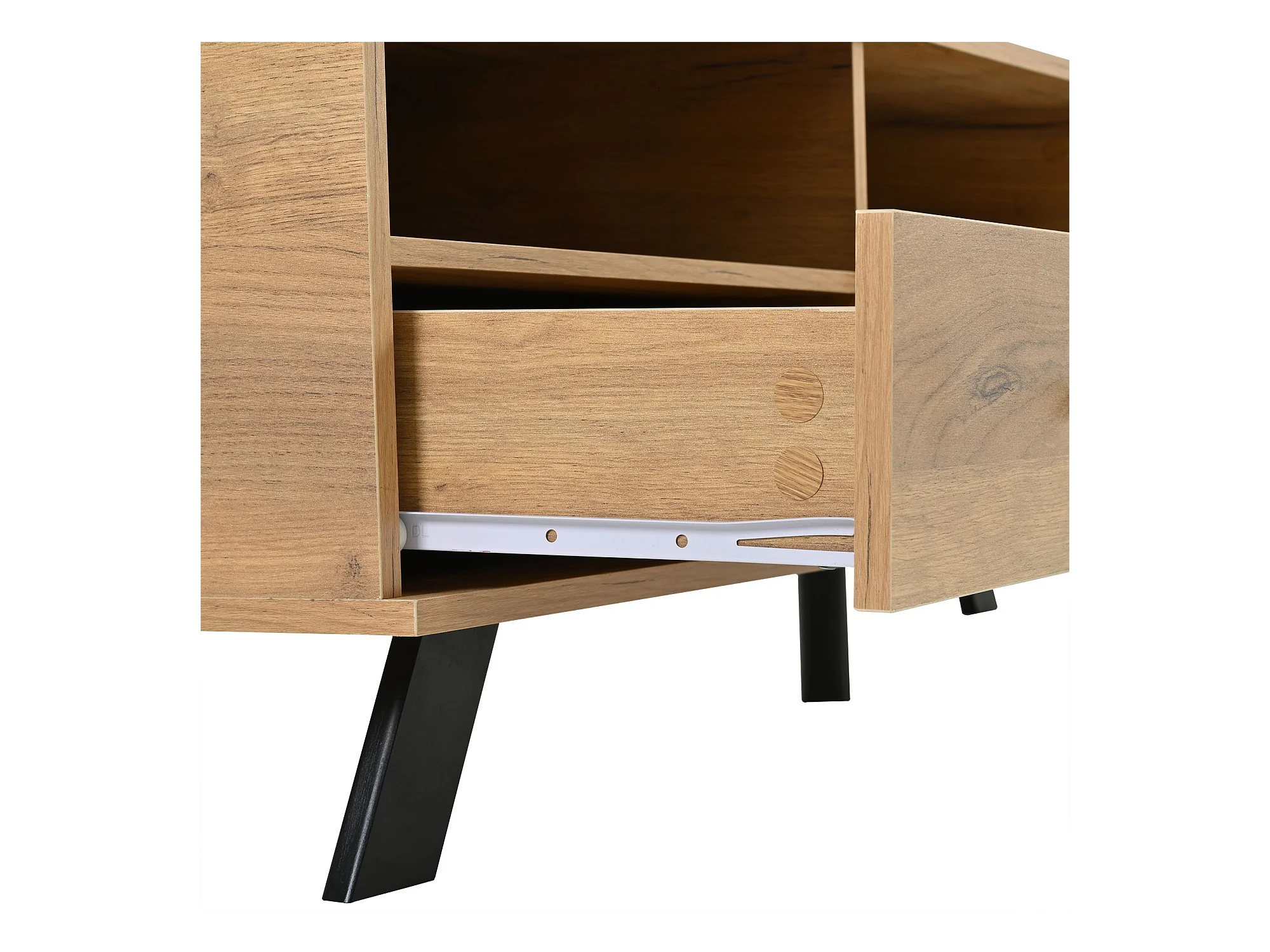 Meuble TV naturel avec 1 porte et 2 tiroirs de rangement - pour salon et bureau