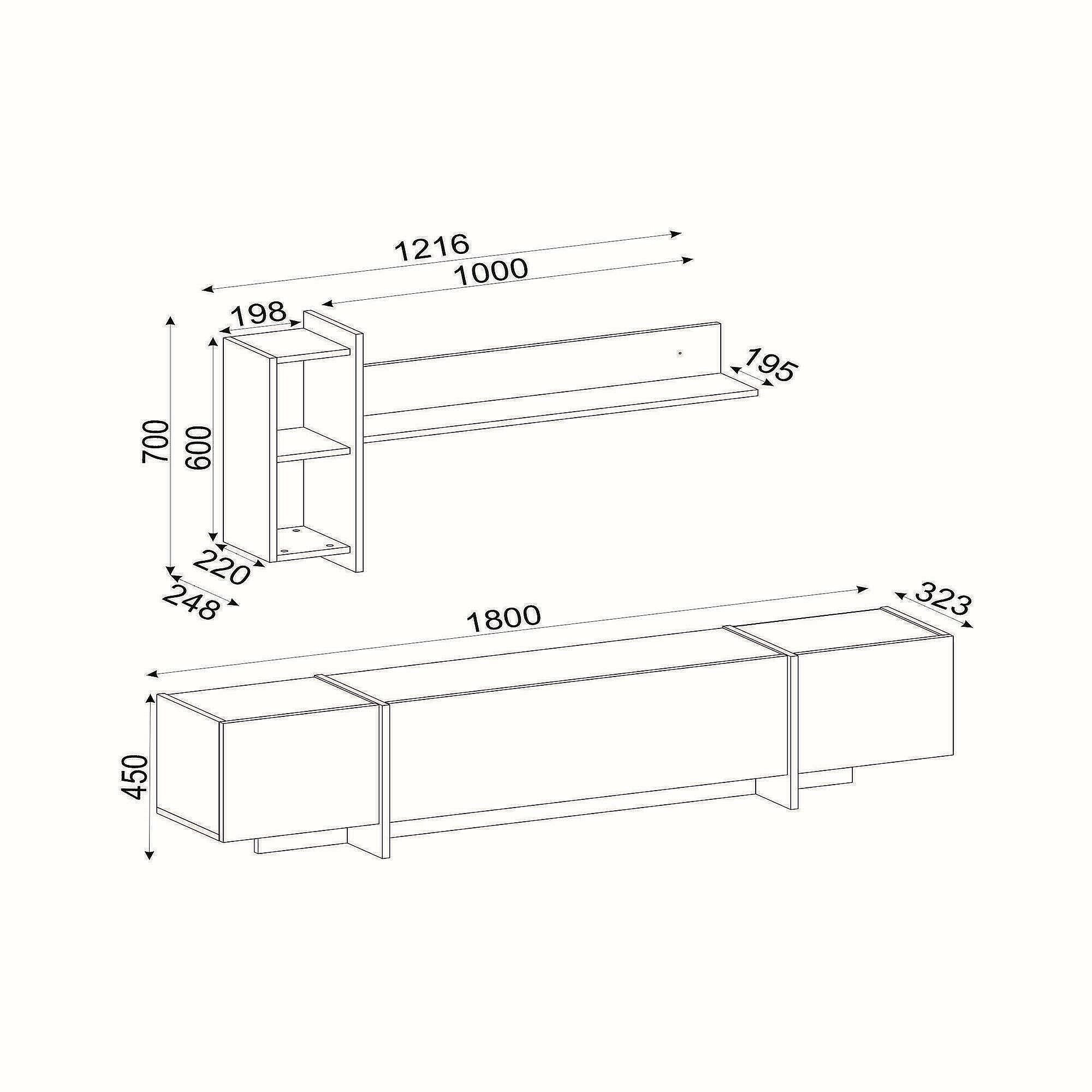 Meuble TV Eltanin, Buffet de salon, Armoire basse pour TV, Base murale de rangement, 180x47h35 cm, Noyer et Anthracite
