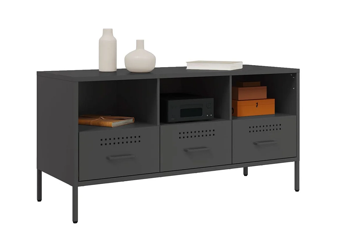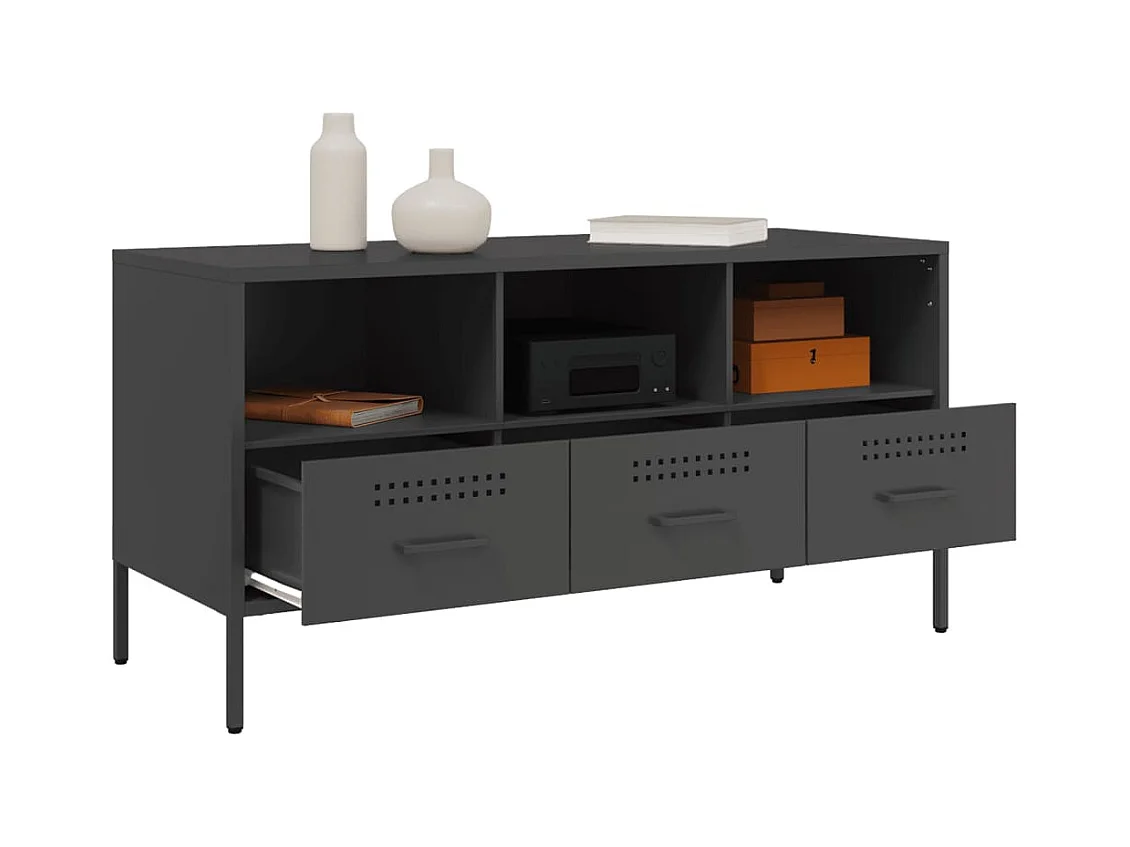 Meuble TV noir 100,5x39x50,5 cm acier laminé à froid FR792801