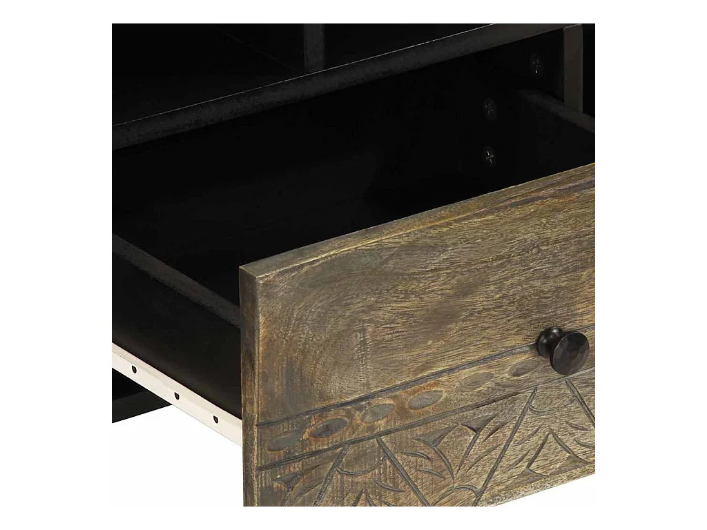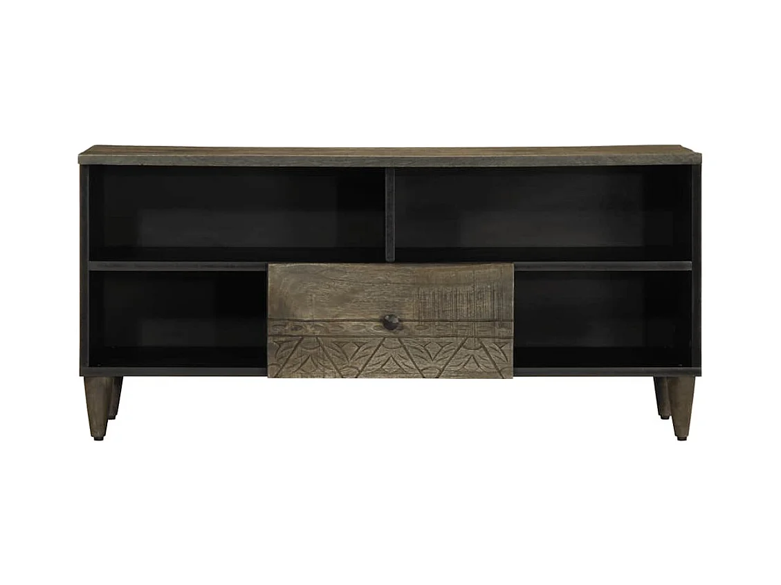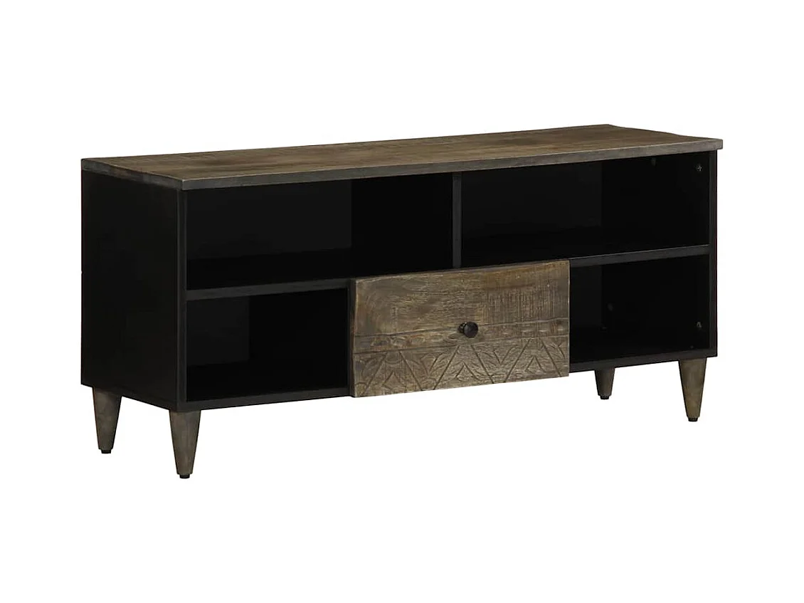Meuble TV noir 100x33x46 cm bois massif de manguier