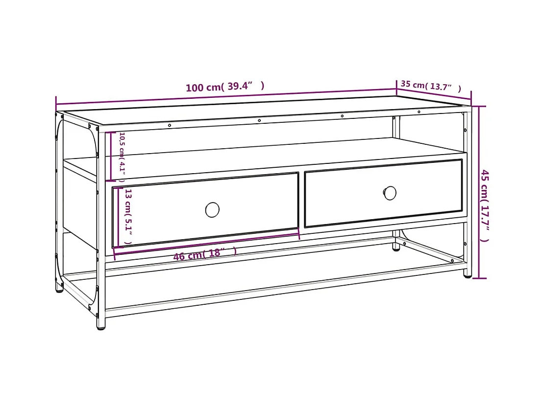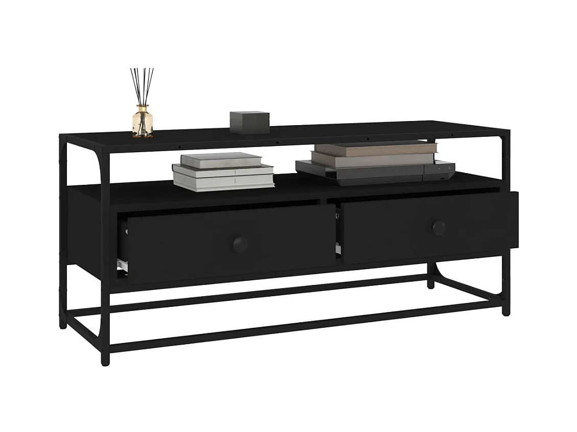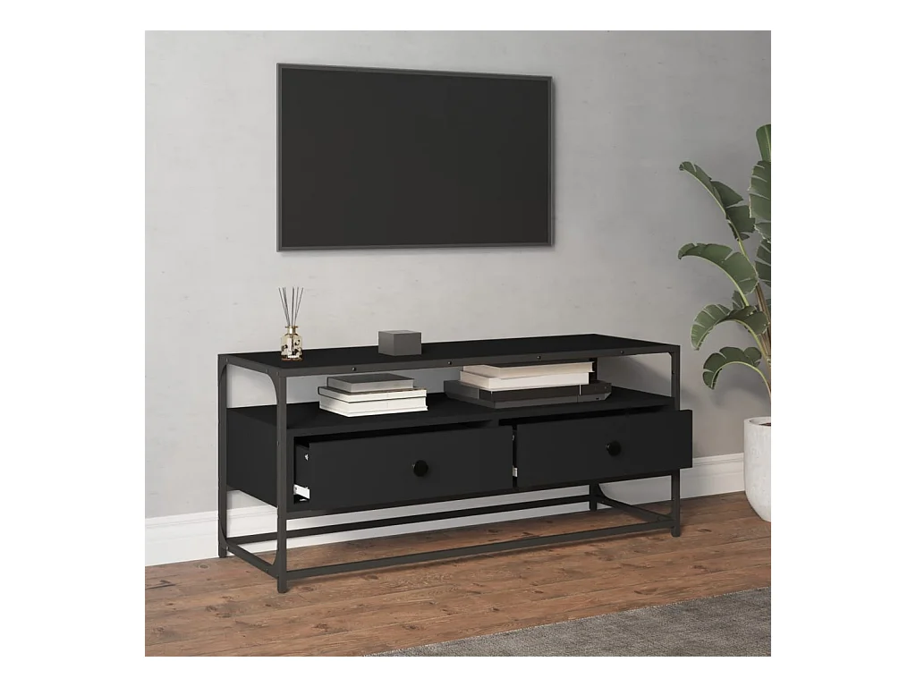 Meuble TV noir 100x35x41 cm bois d'ingénierie et métal