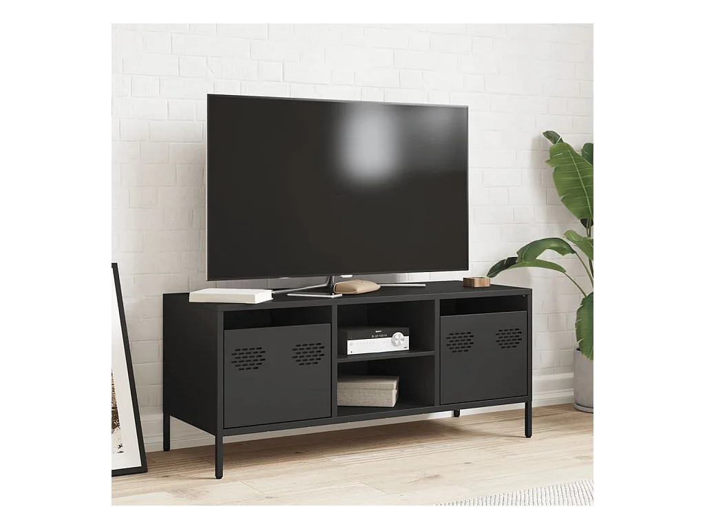 Meuble TV noir 101,5x39x43,5 cm acier laminé à froid