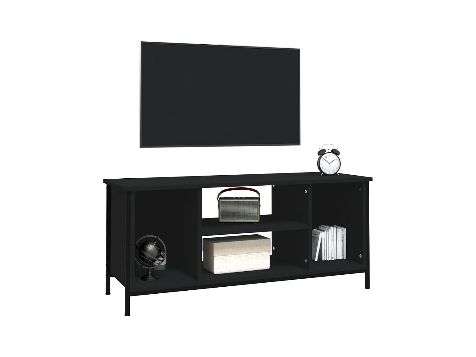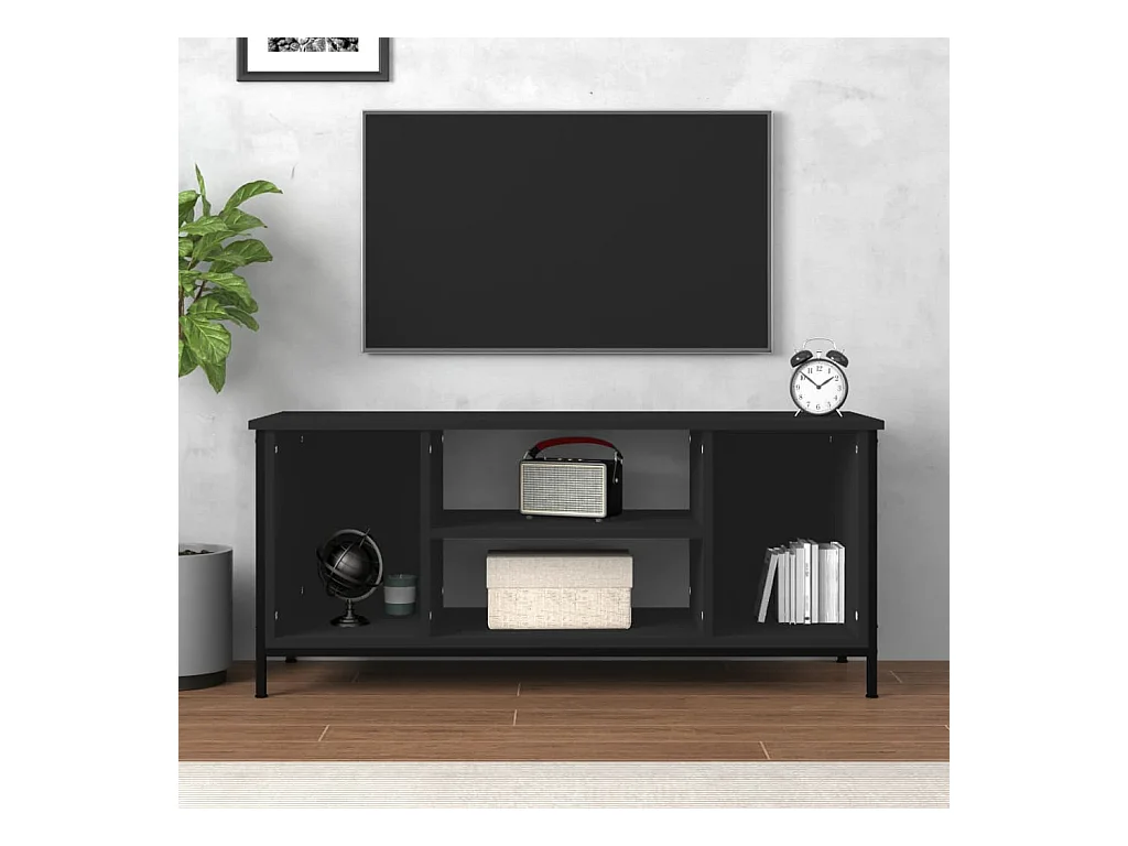 Meuble TV noir 121x35x45 cm bois d'ingénierie et fer