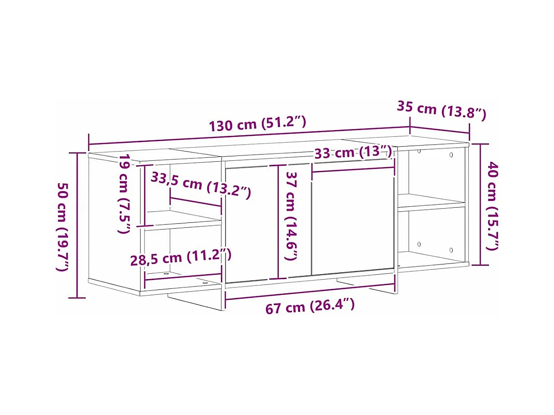 Meuble TV chêne noir 120x30x30,5 cm bois d'ingénierie