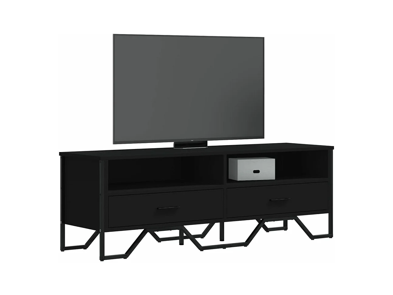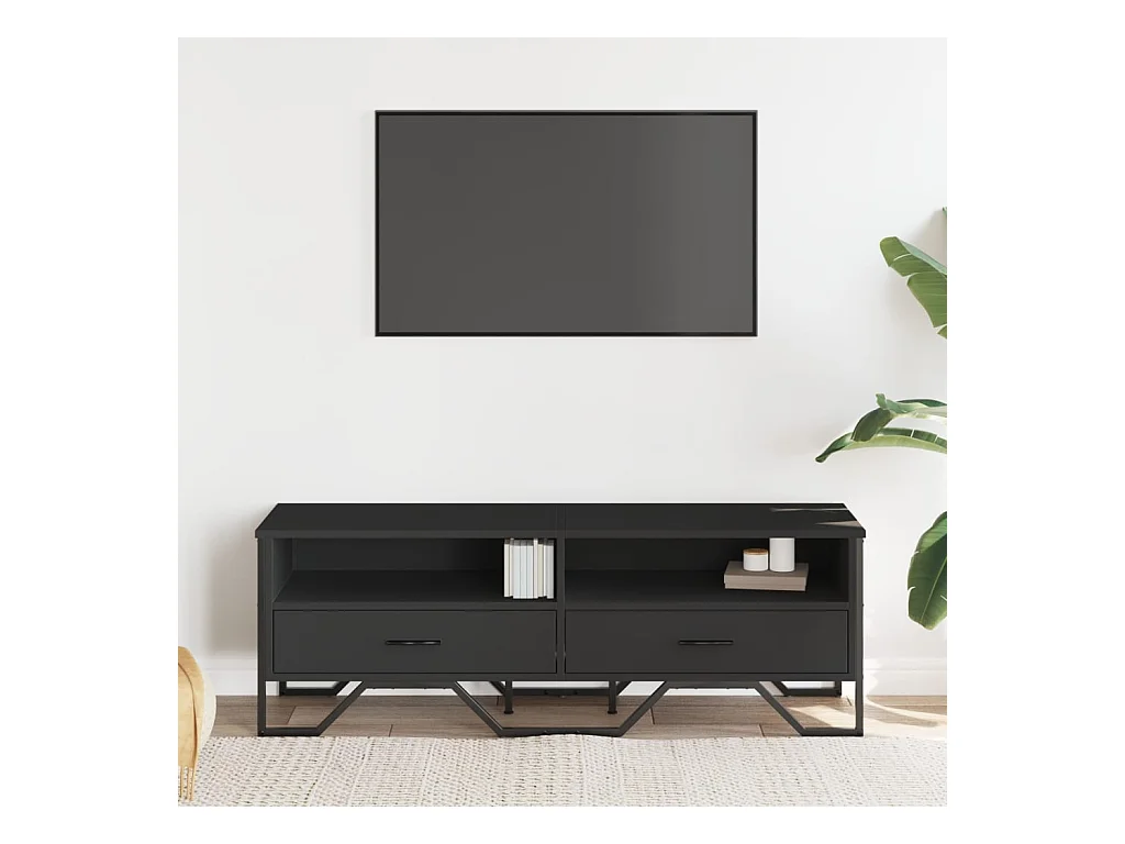 Meuble TV noir bois d'ingénierie et acier enduit de poudre