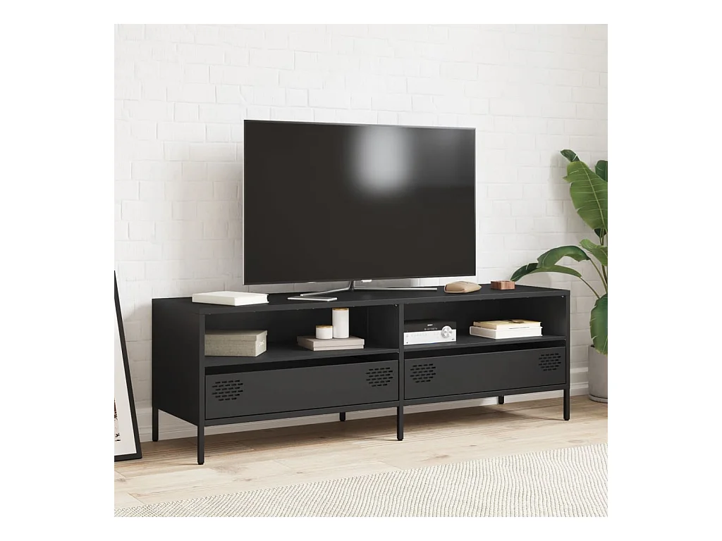 Meuble TV noir 135x39x43,5 cm acier laminé à froid