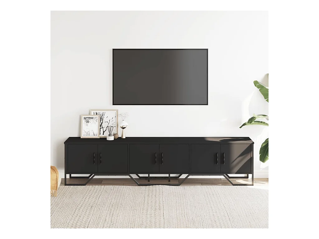 Meuble TV noir bois d'ingénierie et acier enduit de poudre