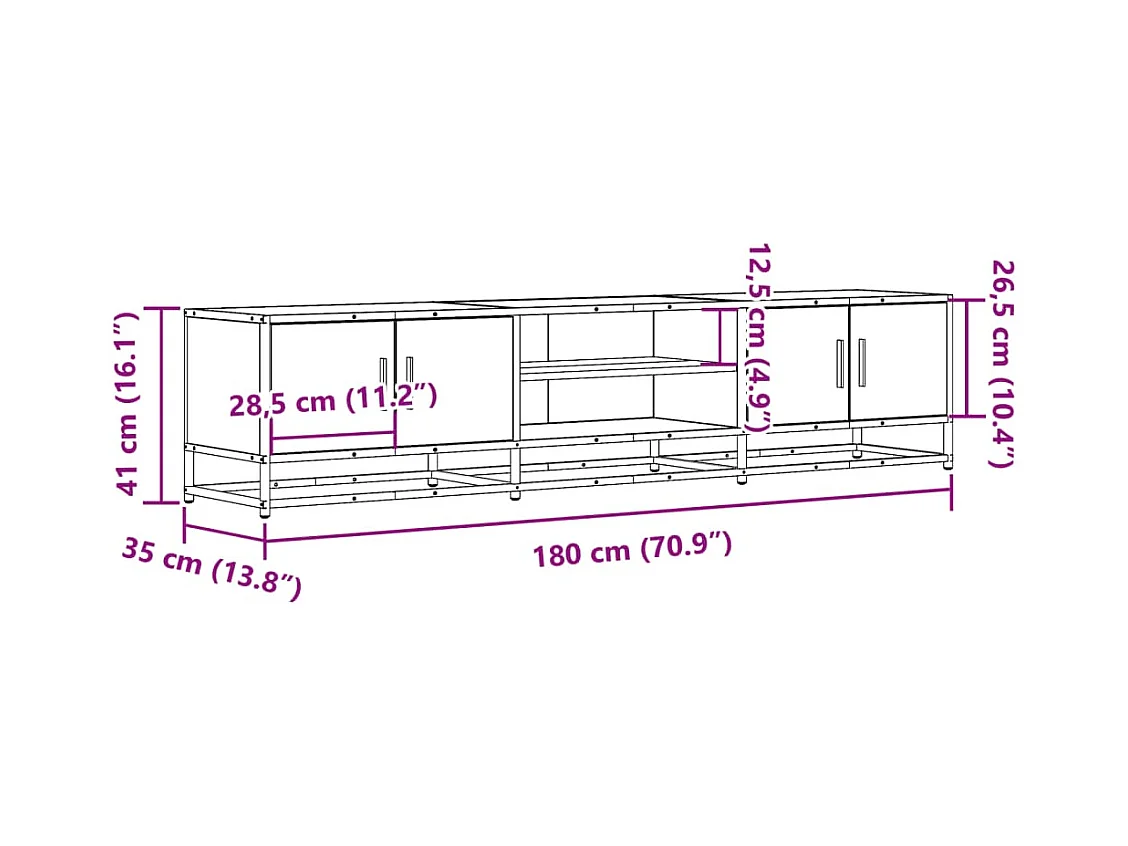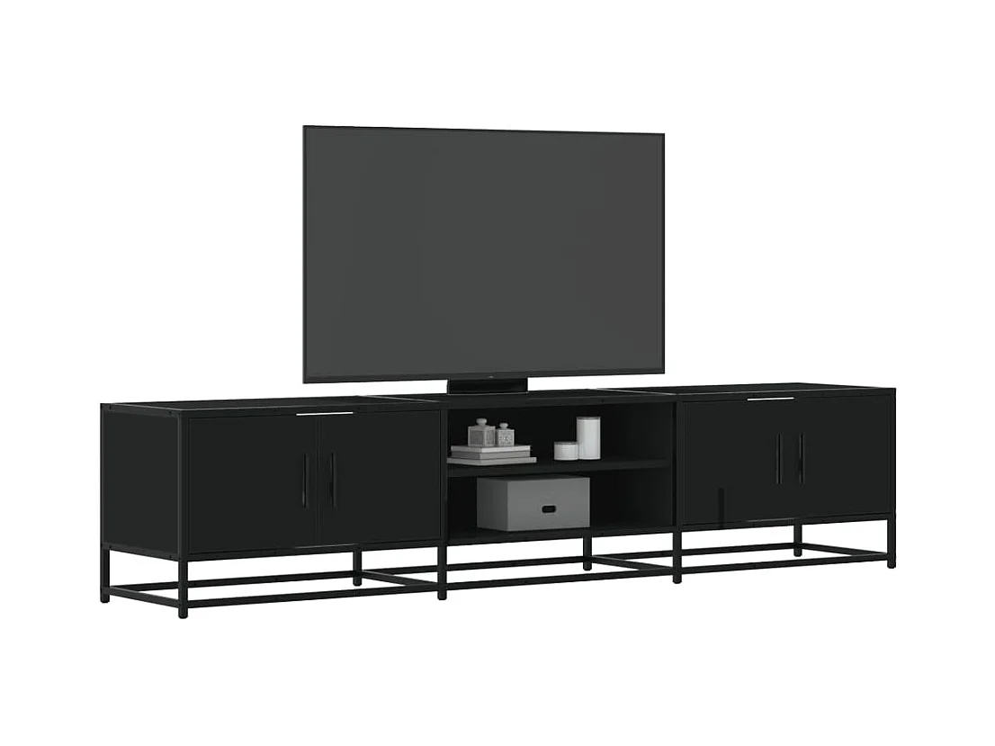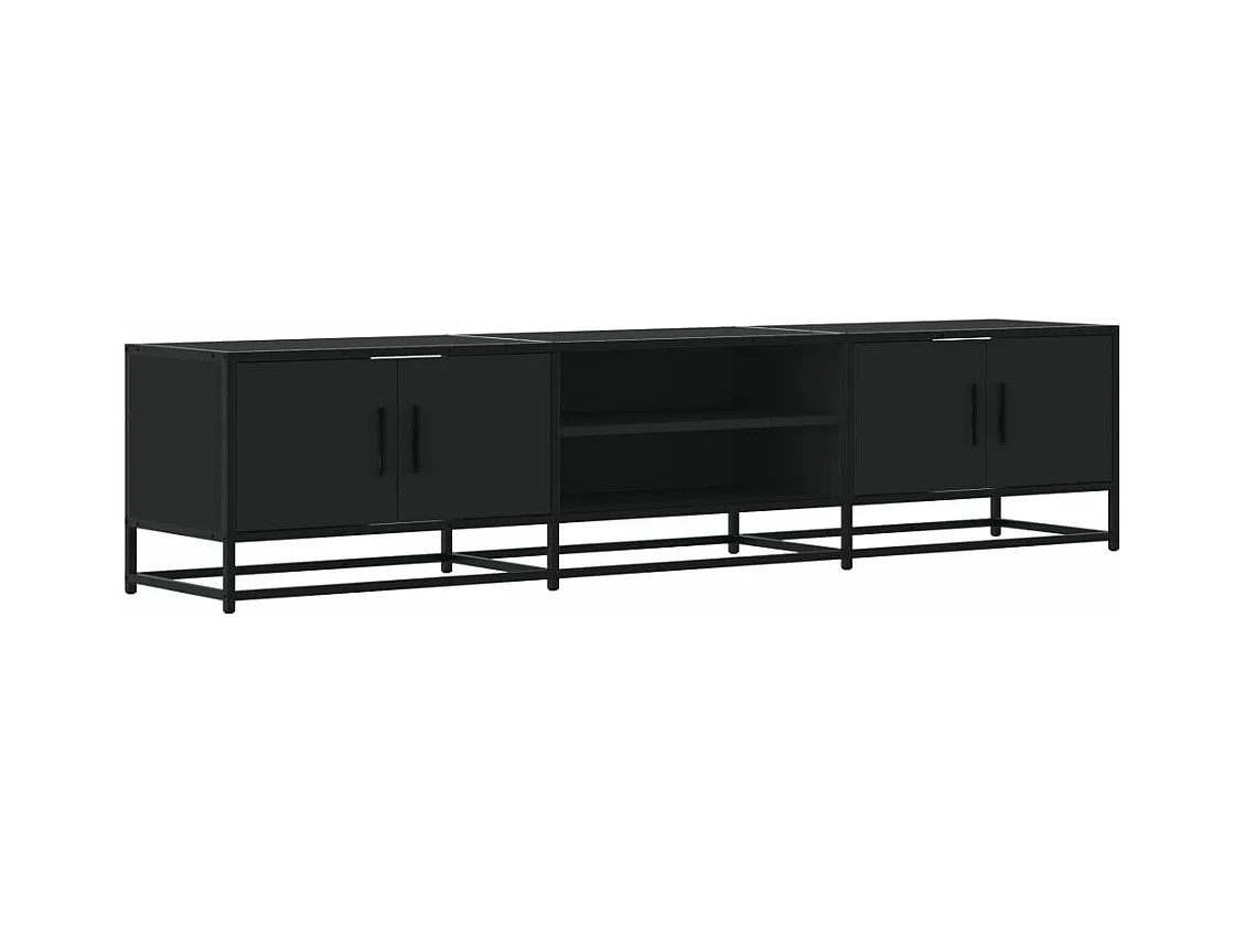 Meuble TV noir bois d'ingénierie et acier enduit de poudre