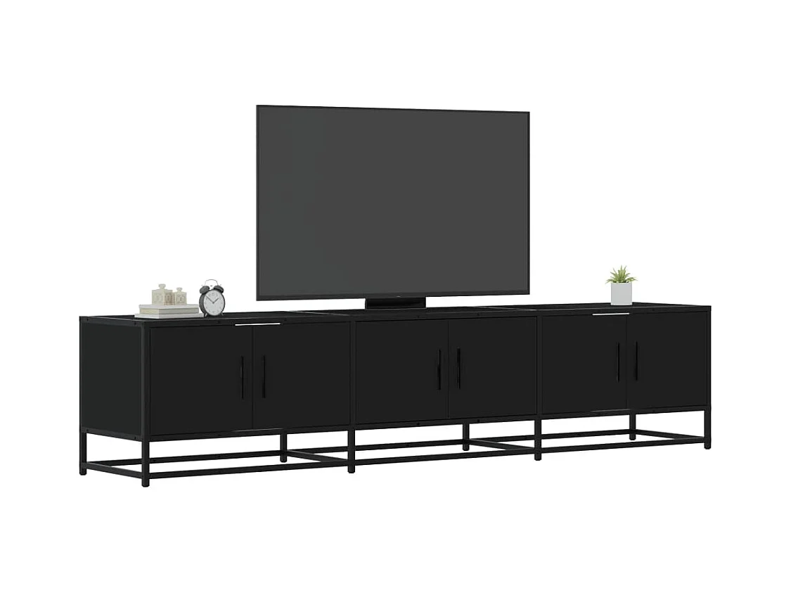 Meuble TV noir bois d'ingénierie et acier enduit de poudre