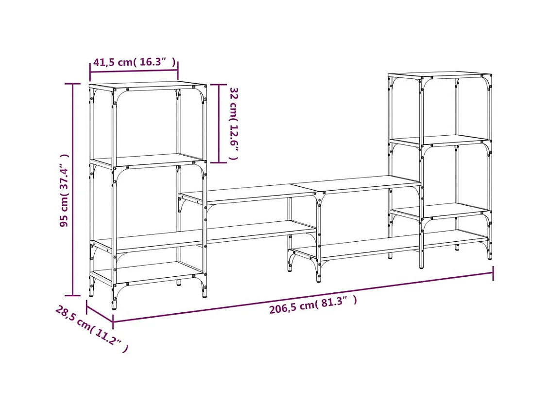 Meuble TV noir 206,5x28,5x95 cm Bois d'ingénierie