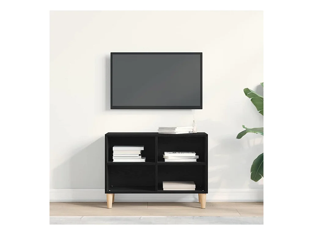 Meuble TV avec pieds en bois massif Noir 69,5x30x50 cm