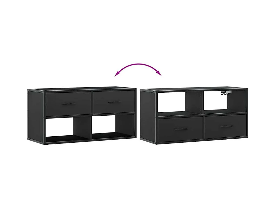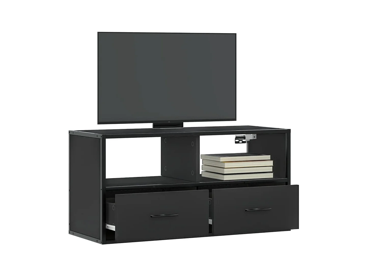 Meuble TV noir 100x31x39,5 cm bois d'ingénierie et métal