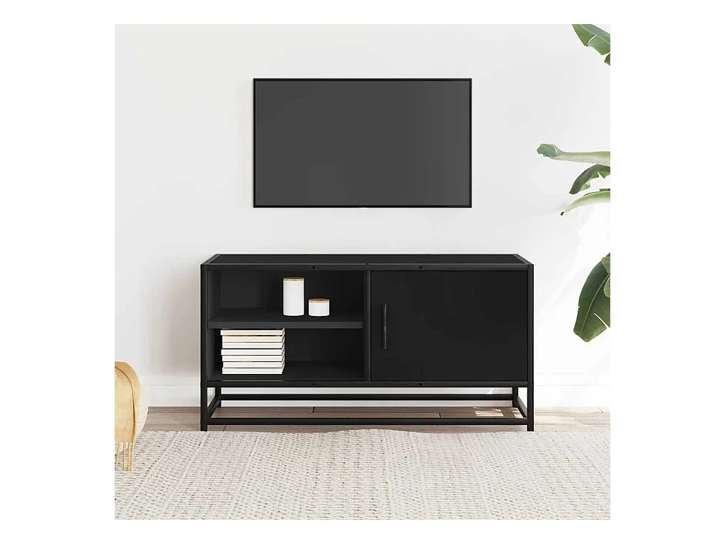 Meuble TV noir 100x34,5x40 cm bois d'ingénierie et métal
