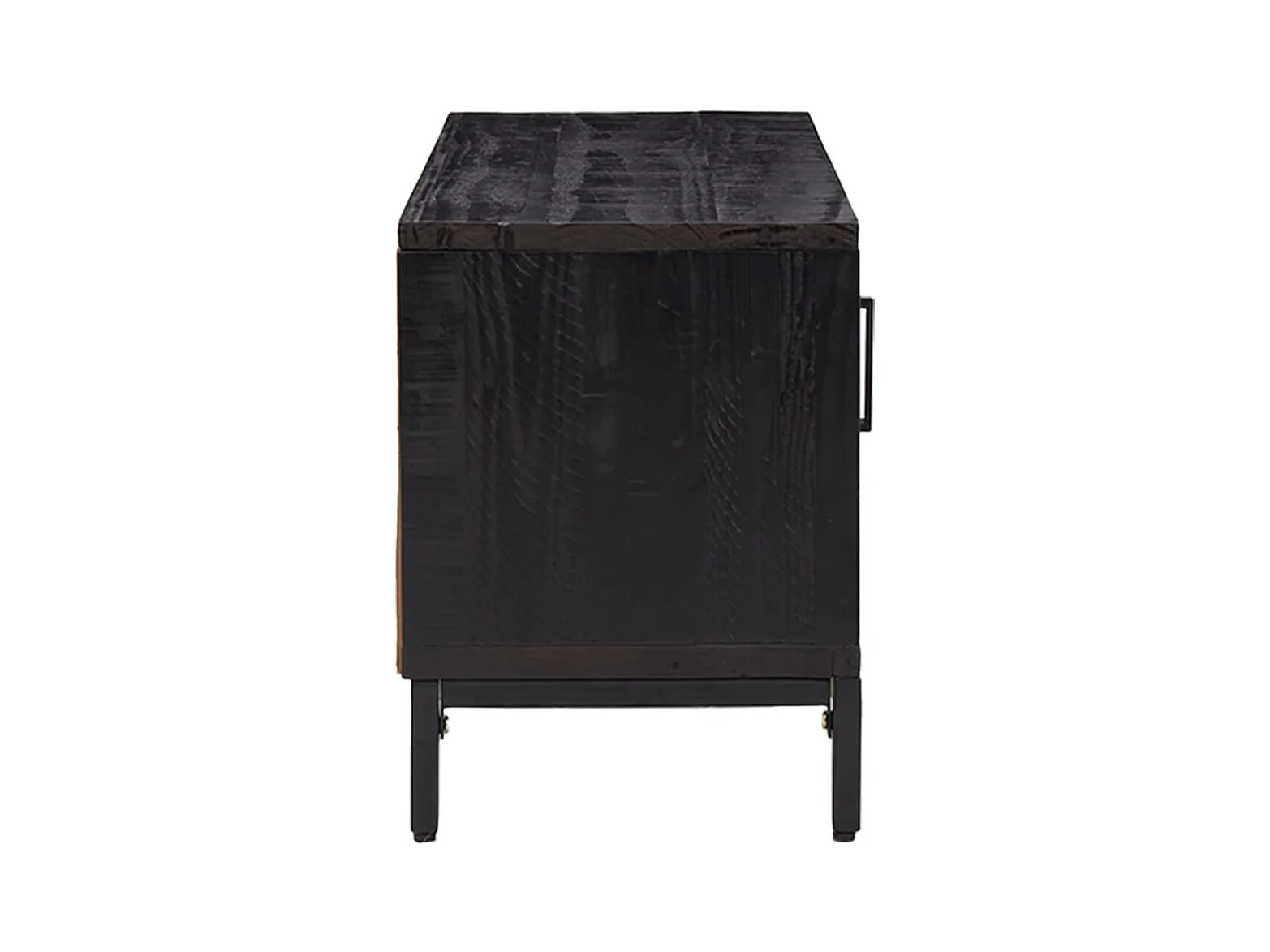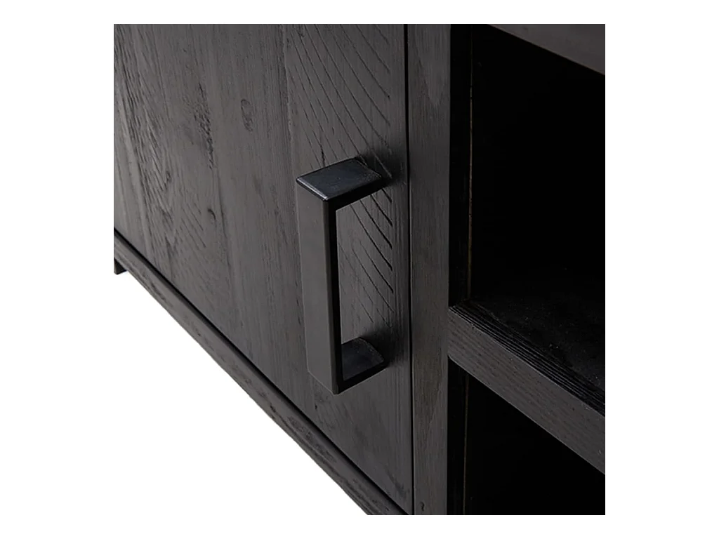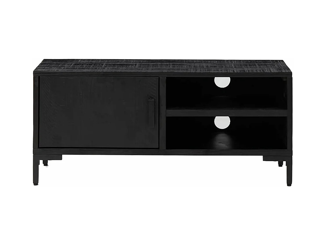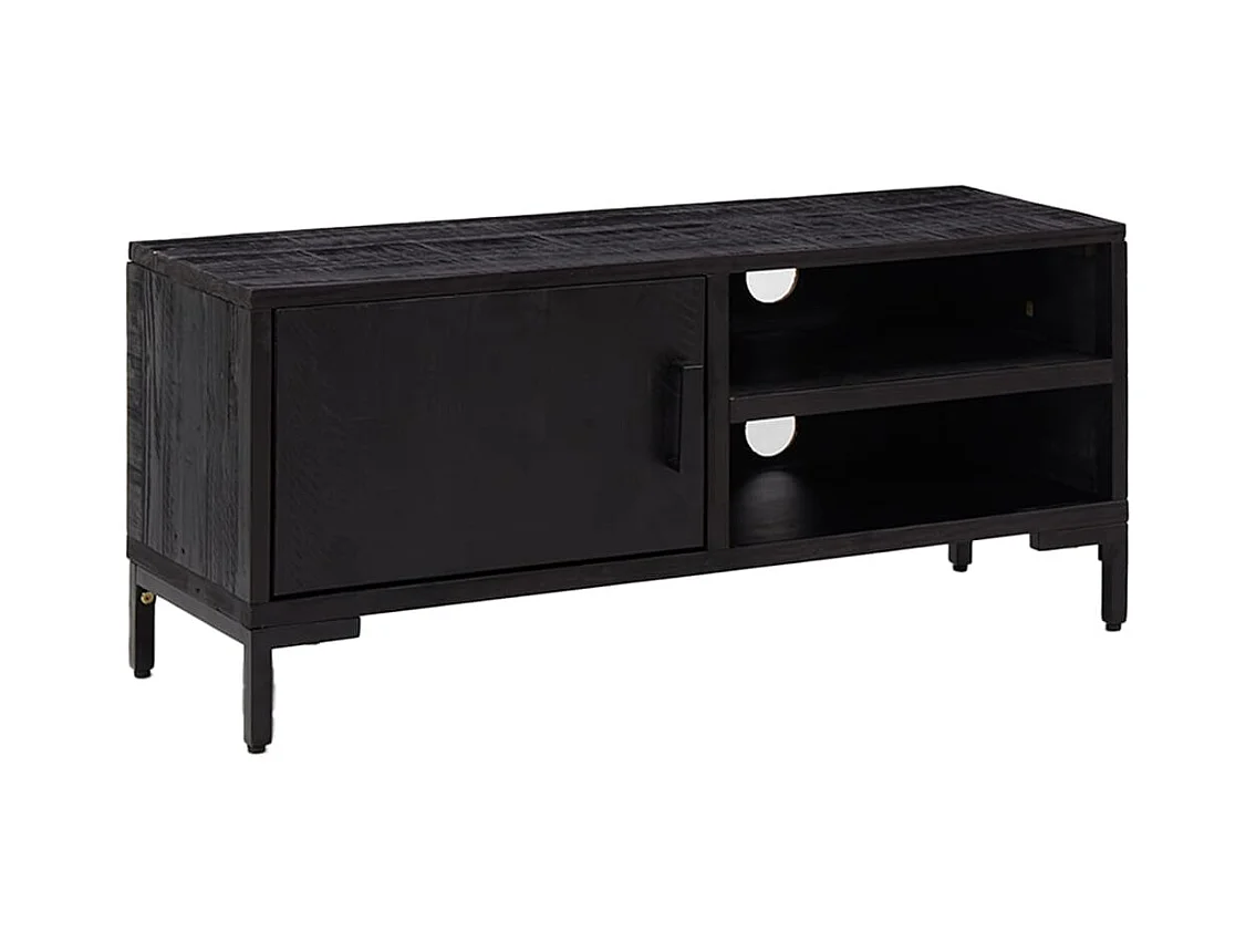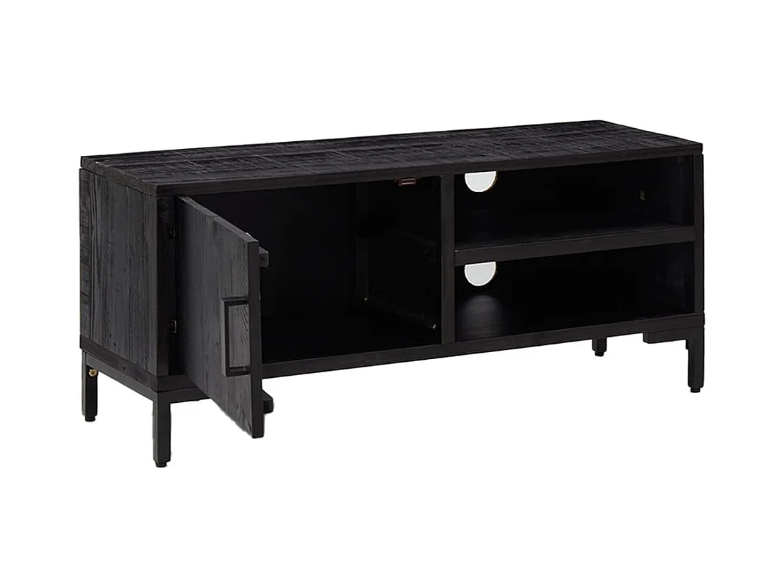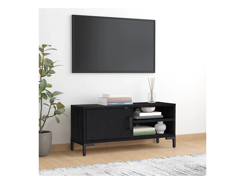 Meuble TV Noir 105x30x40cm Bois de pin massif et rotin naturel BE18057