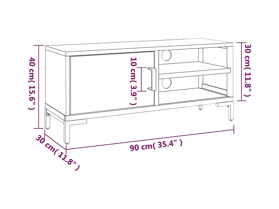 Meuble TV 90x30x41 cm Bois de manguier brut BE63160