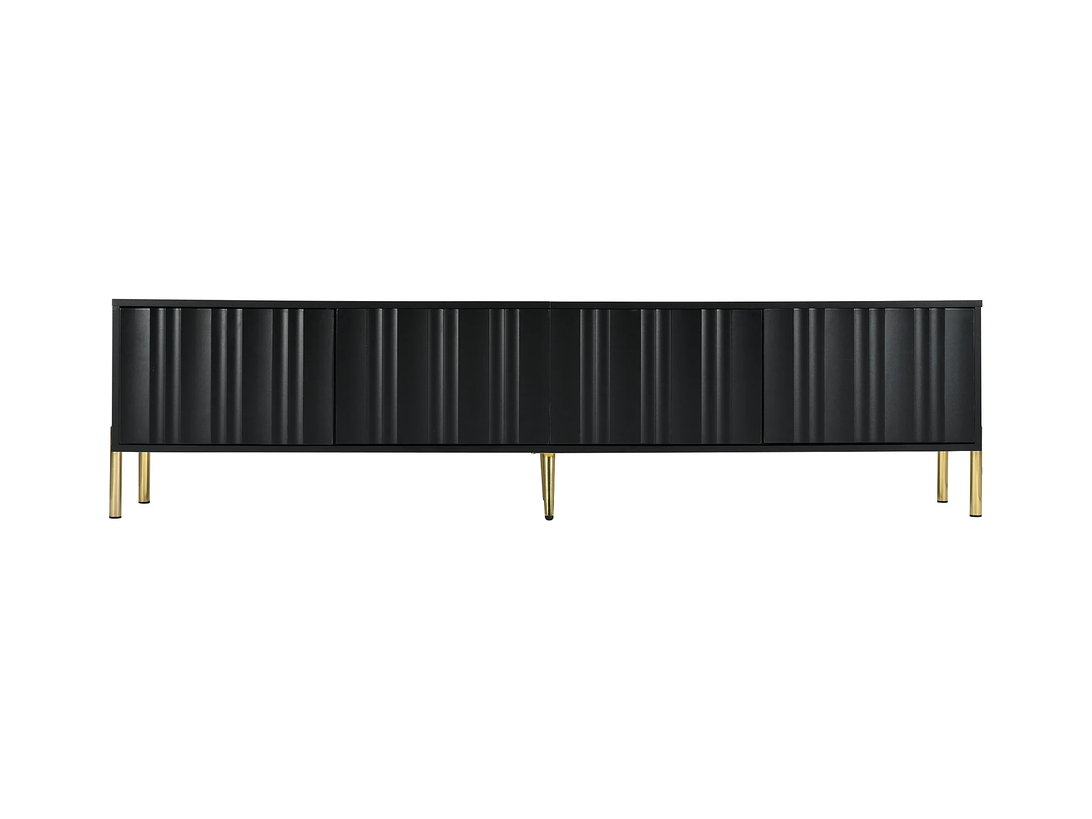 Meuble TV noir avec 4 portes cannelées et pieds dorés – pour salon et bureaux