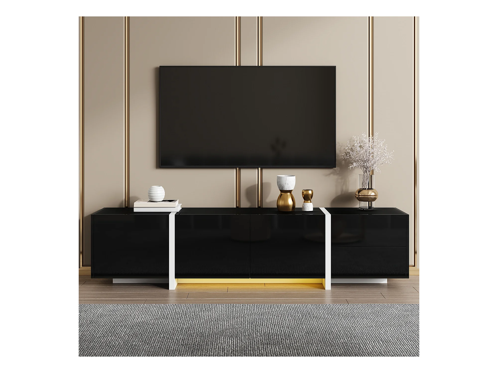 Meuble TV noir brillant - Meuble TV avec 1 tiroir et 4 portes - avec éclairage LED - pour salon