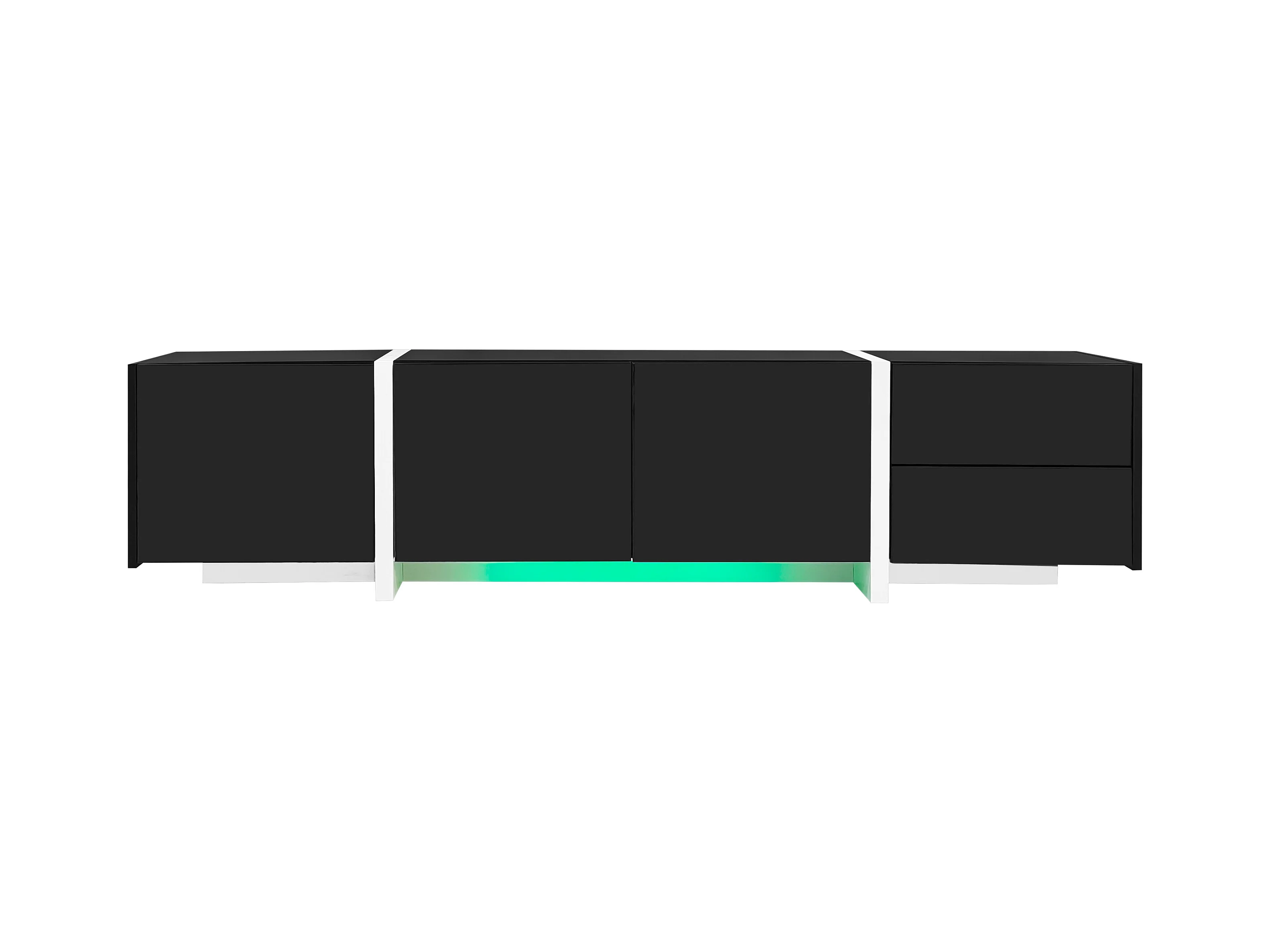 Meuble TV noir avec 4 portes et 1 tiroir de rangement, éclairage LED - pieds blancs