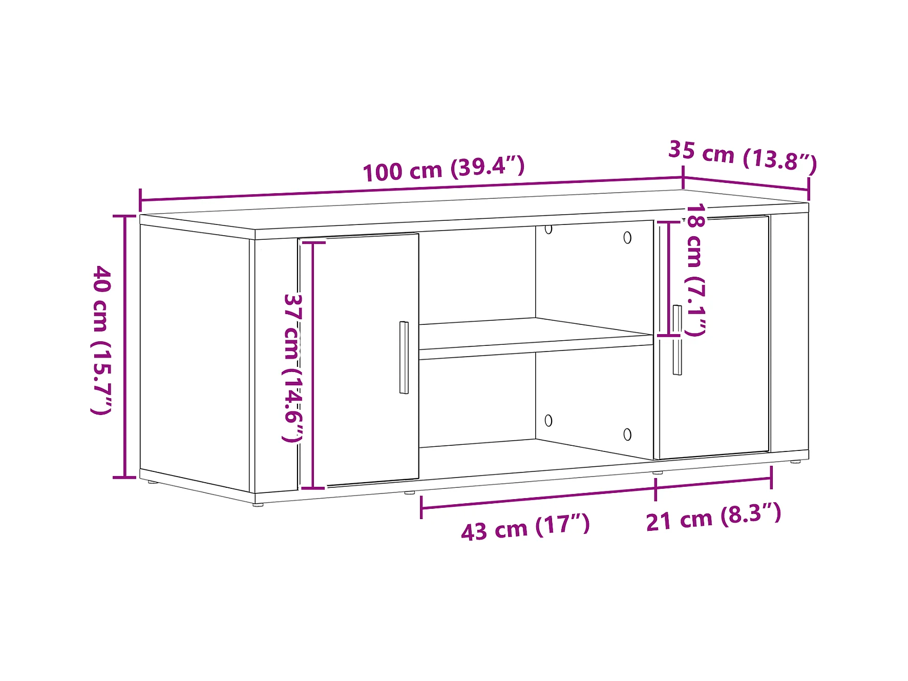 Meuble TV Noir Chêne 100x35x40 cm Bois d'ingénierie