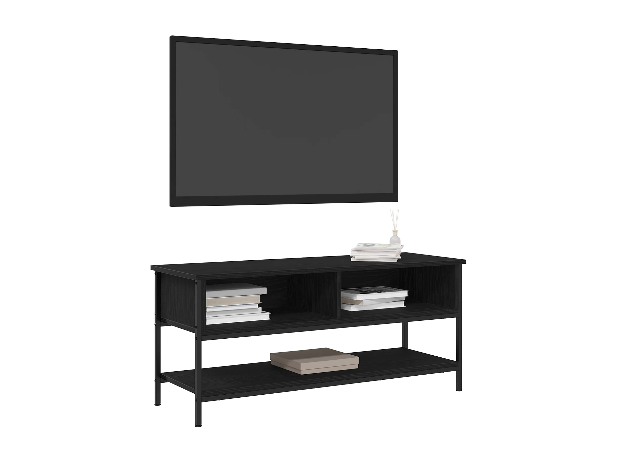 Meuble TV Noir Chêne 102x35x36,5 cm Bois d'ingénierie