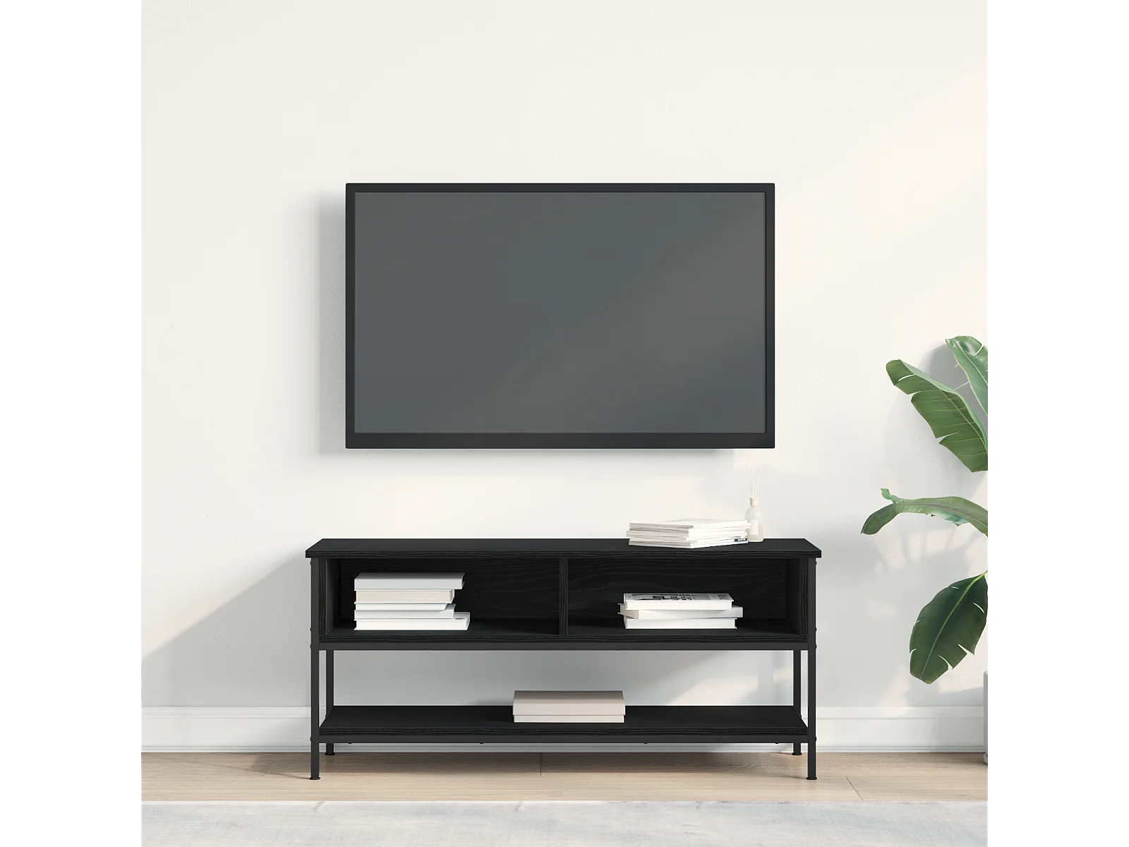 Meuble TV Noir Chêne 100x30x30 cm Bois d'ingénierie