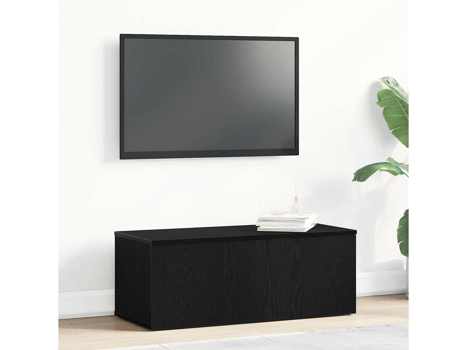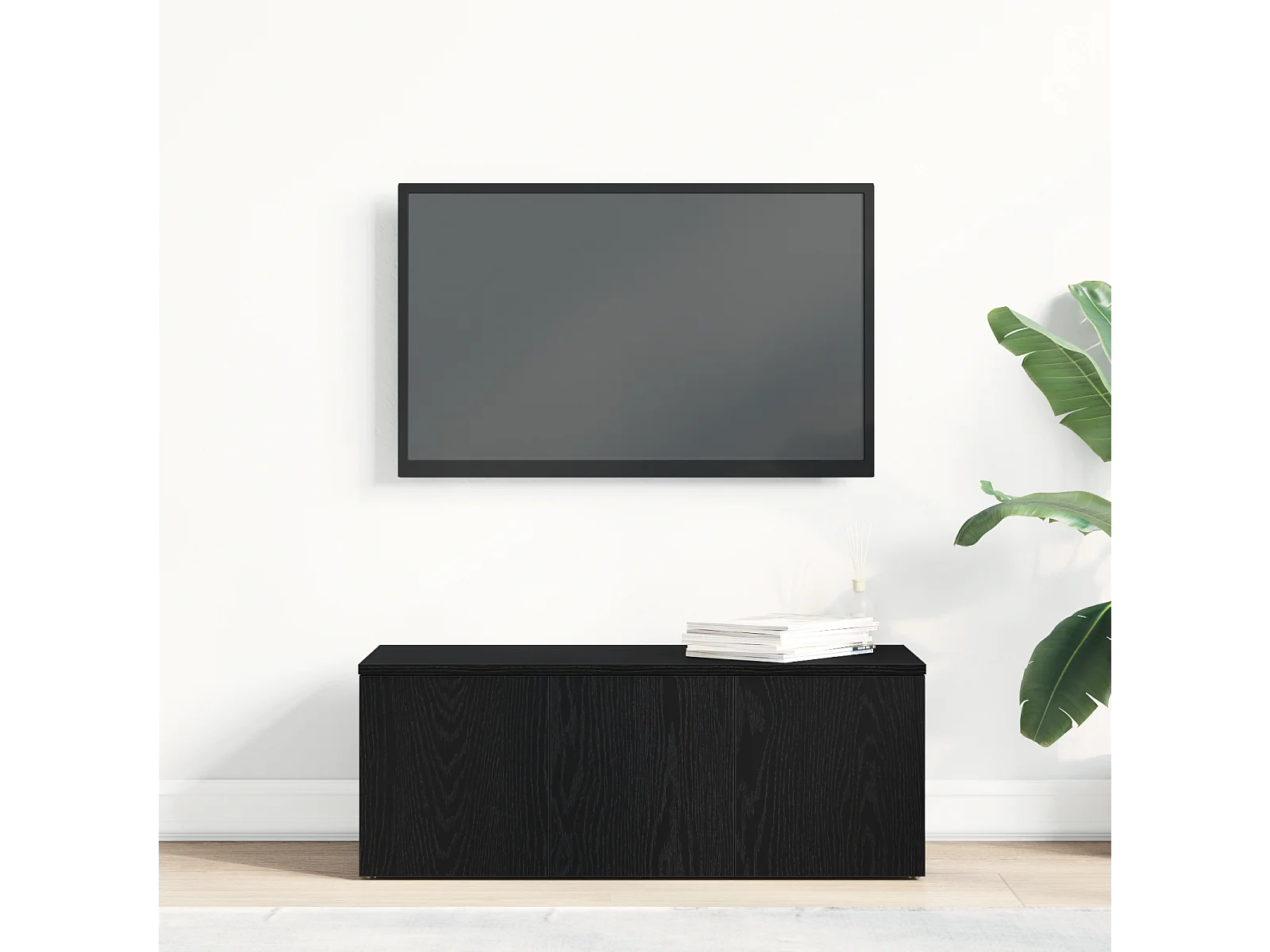 Meuble TV noir en chêne 80x34x30 cm en bois d'ingénierie