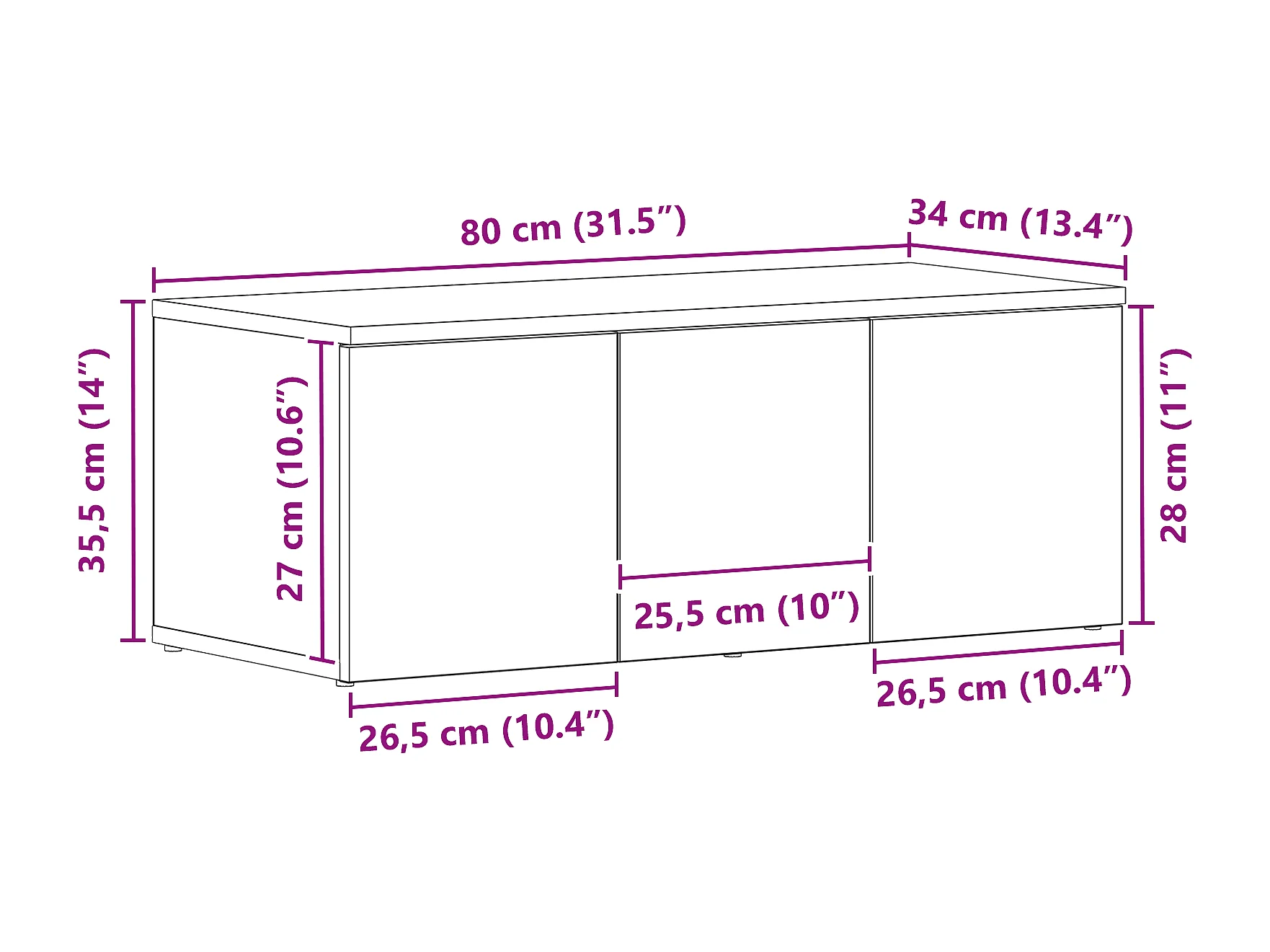 Sea Meuble TV avec 3 tablettes de rangement, noir.