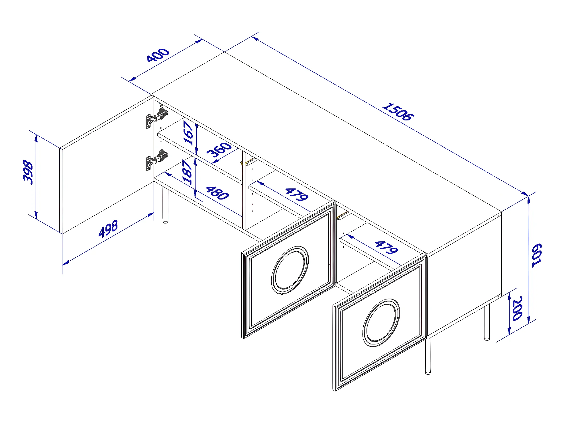 Meuble TV PALACE 150 cm 3D noir mat / chêne craft