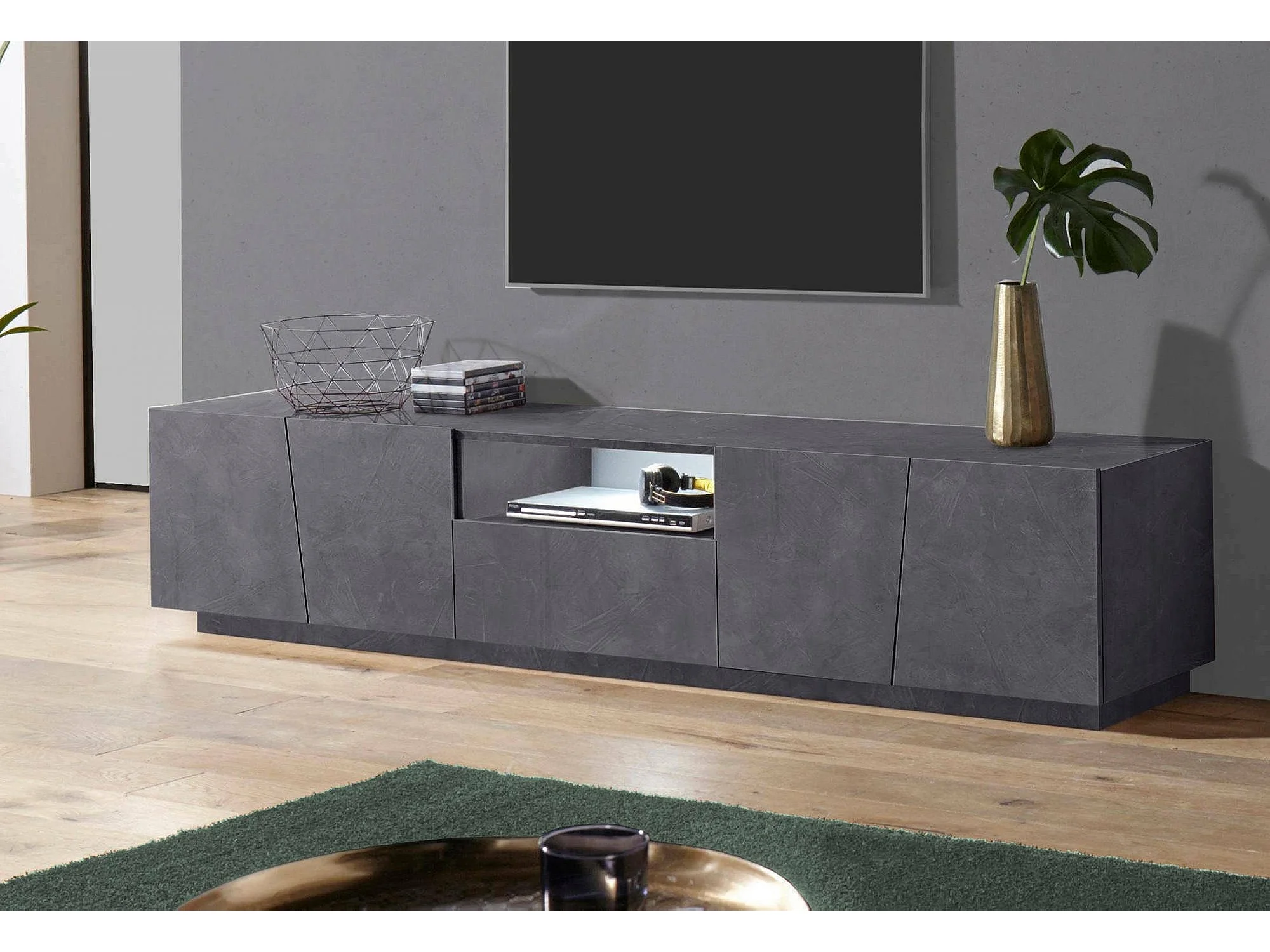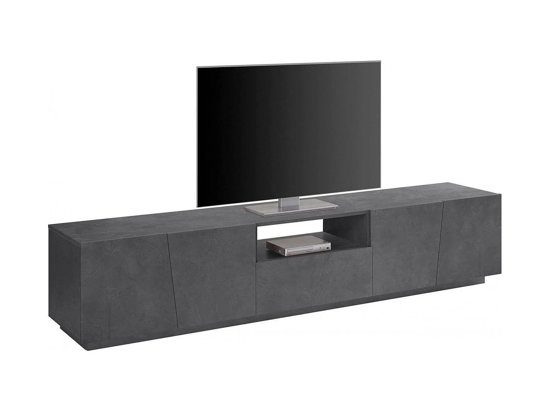 Meuble TV Paul, Buffet bas de salon, Base pour meuble TV, 100% Made in Italy, 220x43h46 cm, Ardoise, avec lumière LED