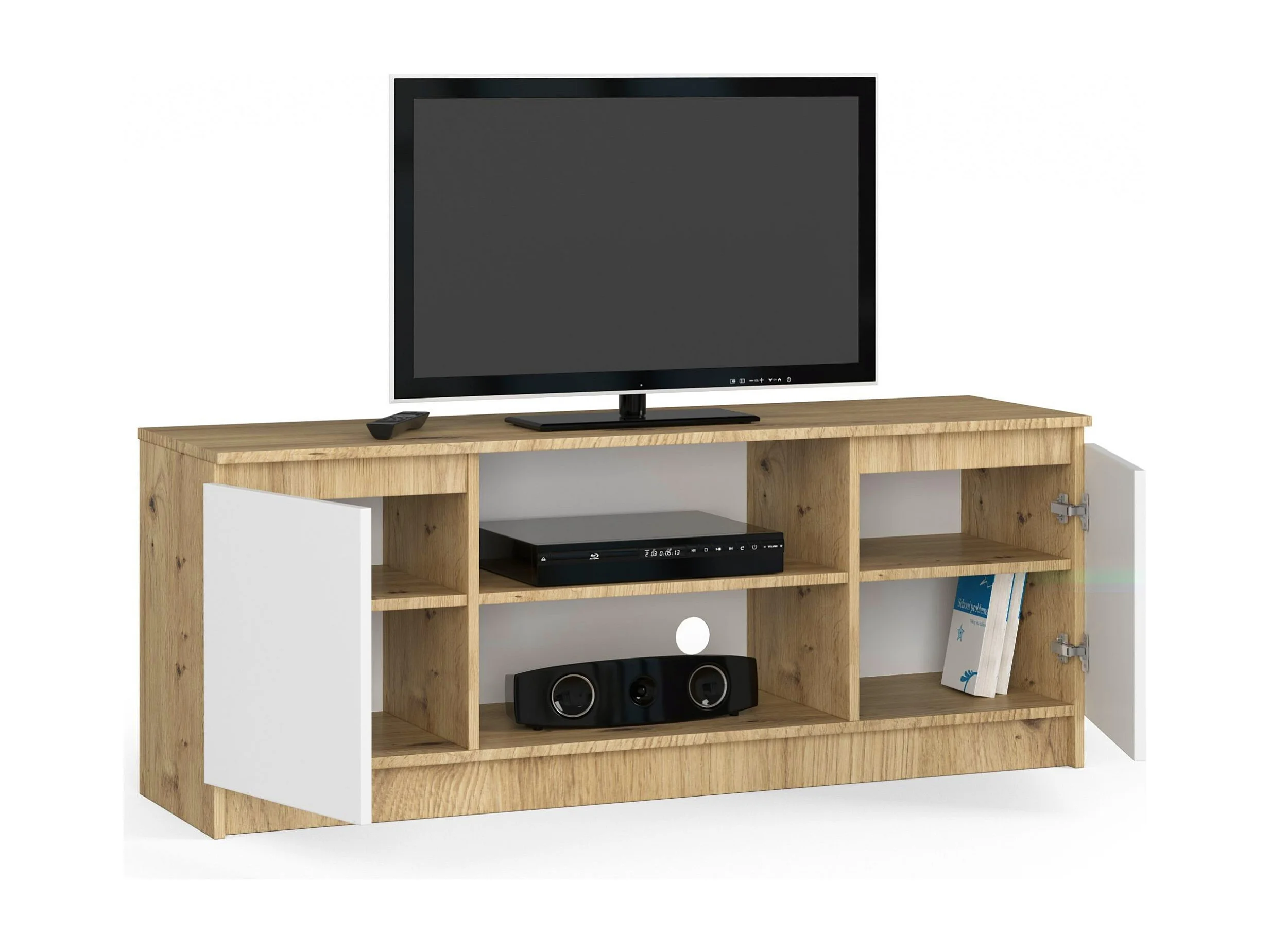Meuble TV pour salon AKORD Chêne Artisan 140 cm 2 portes façade Blanche 2 étagères 140x40x55 cm