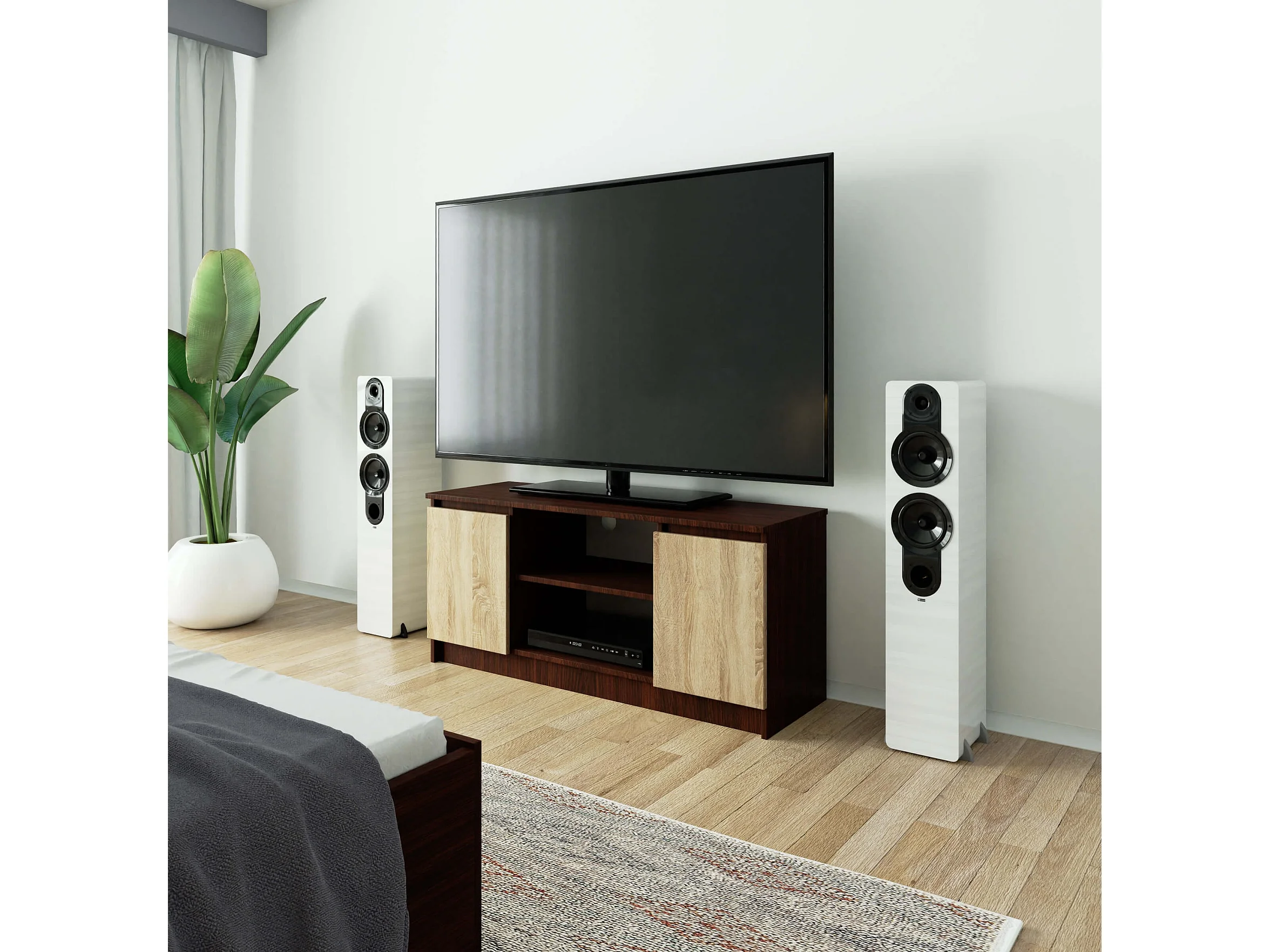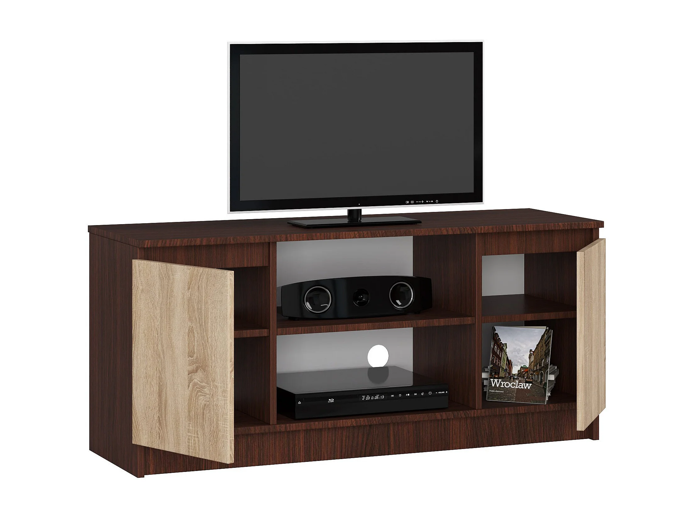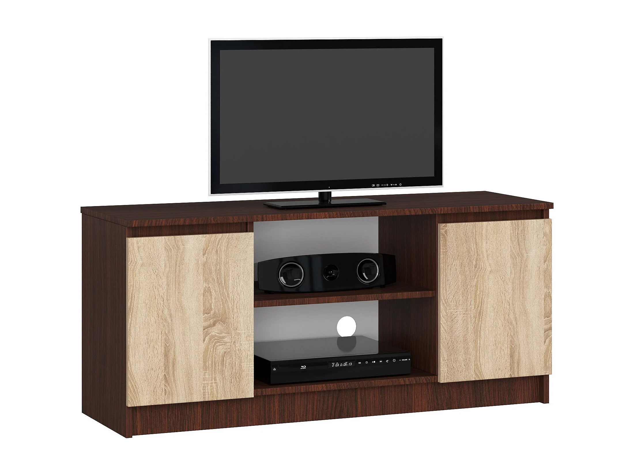 Meuble TV pour salon AKORD Wengé 120 cm 2 portes façade Chêne Sonoma 2 étagères 120x40x55 cm