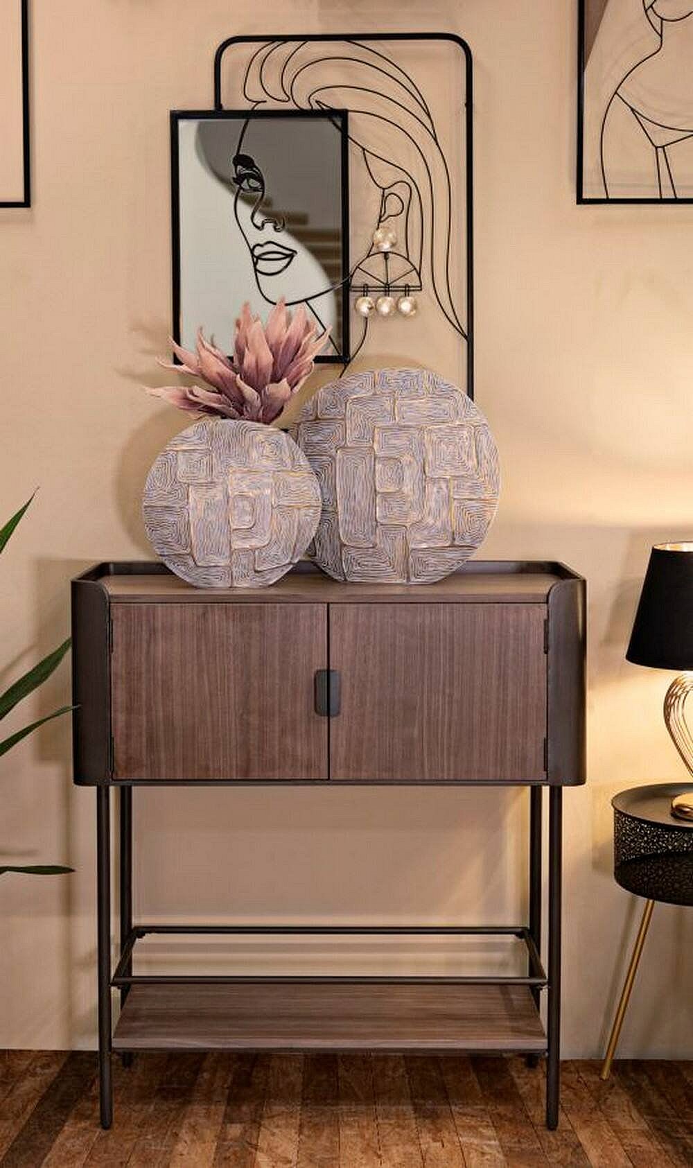 CARACTÉRISTIQUES TECHNIQUES - Accessoire d'ameublement polyvalent, conçu pour une intégration facile avec d'autres meubles - Emballage résistant, conçu pour le commerce électronique - Matériau: Fer, Bois - Informations supplémentaires: Meuble en métal et bois - 3 portes - 1 étagère - Démonté.