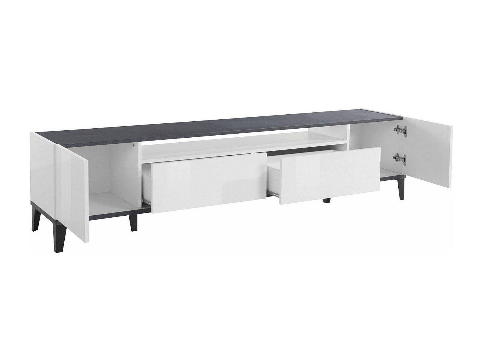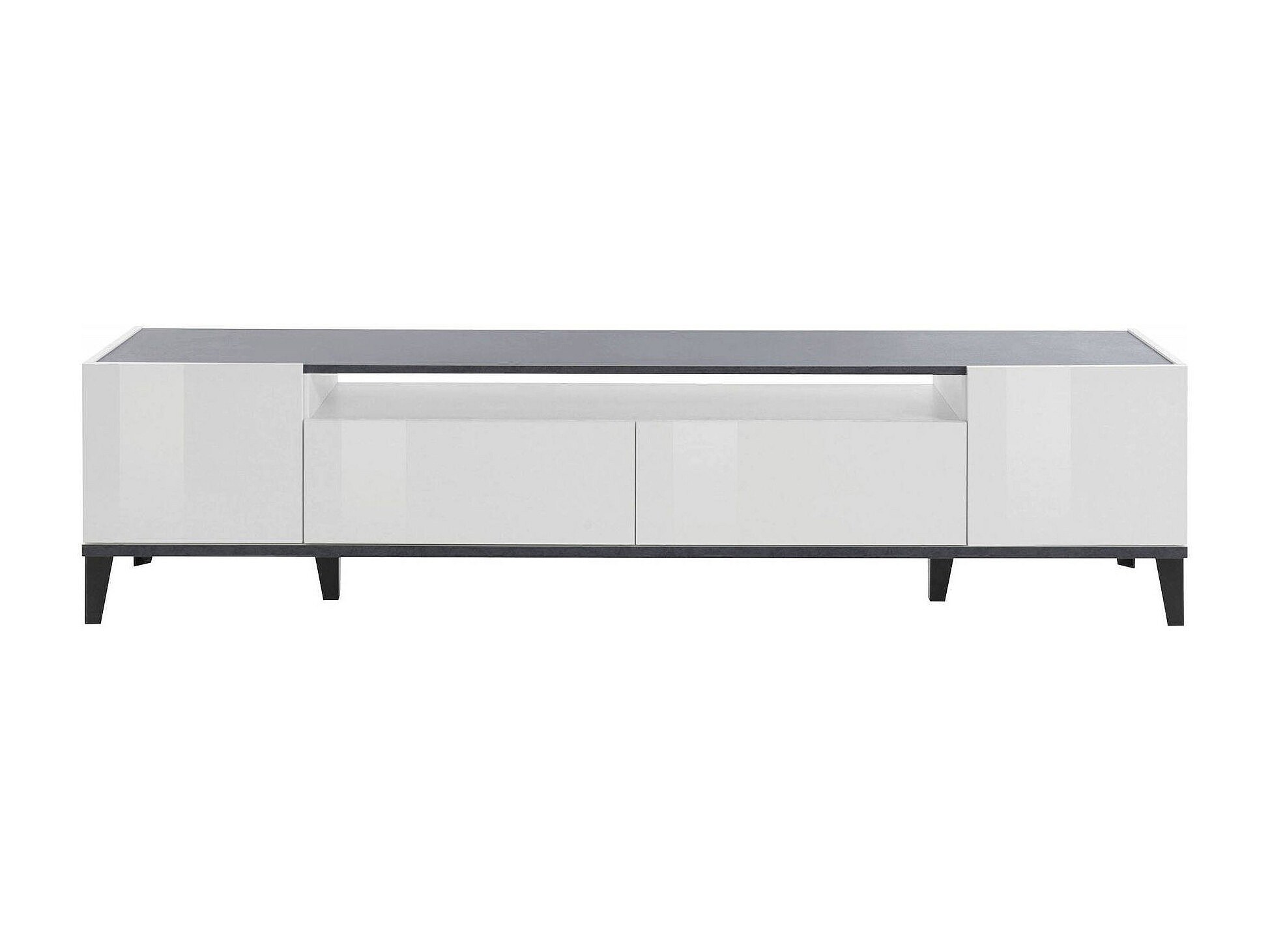 Meuble TV Raffaele, Buffet bas de salon avec 2 portes, Base pour meuble TV, 100% Made in Italy, 200x40h47 cm, Blanc brillant et ardoise