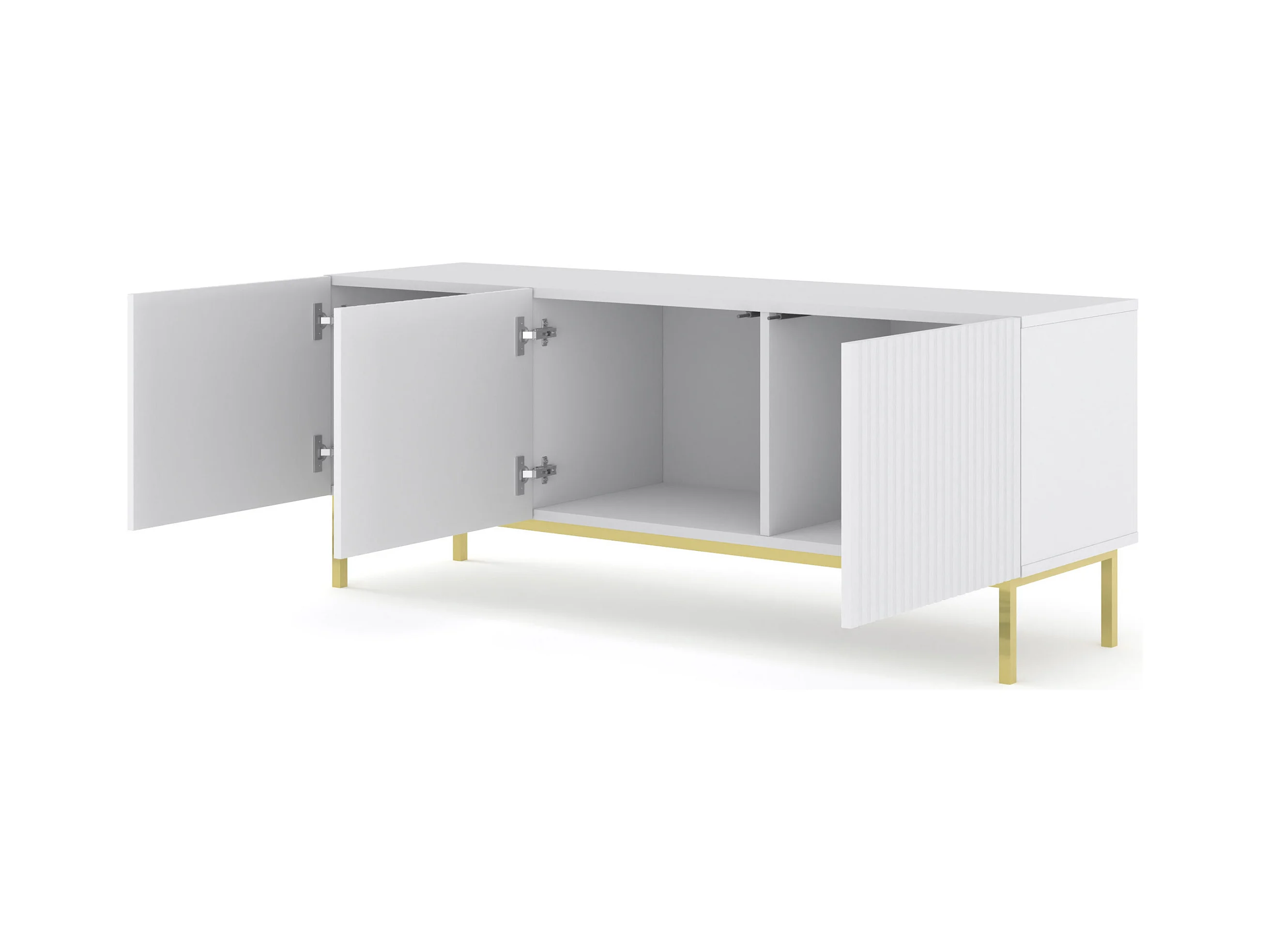 Meuble TV Ravenna B 150 cm MDF usiné 3D avec pieds épingles, finition plaquée