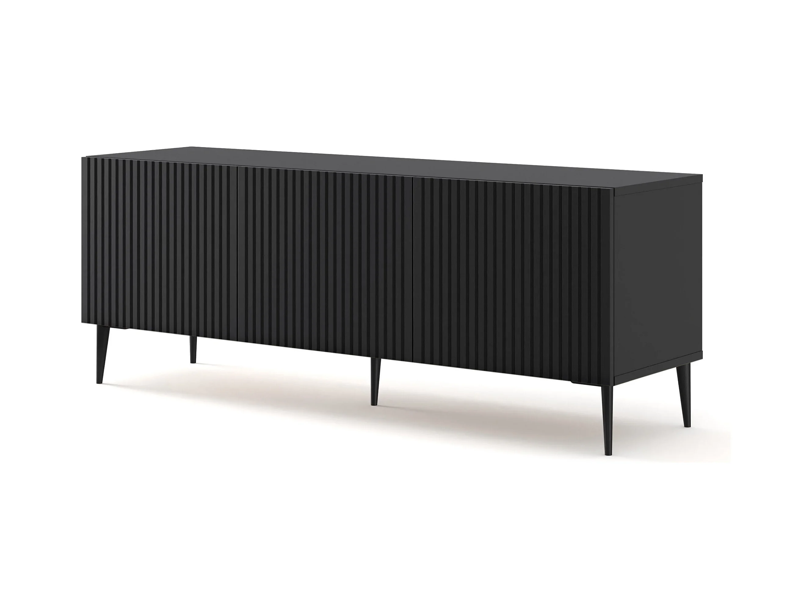 Meuble TV Ravenna B 150 cm MDF usiné 3D avec pieds épingles, finition plaquée