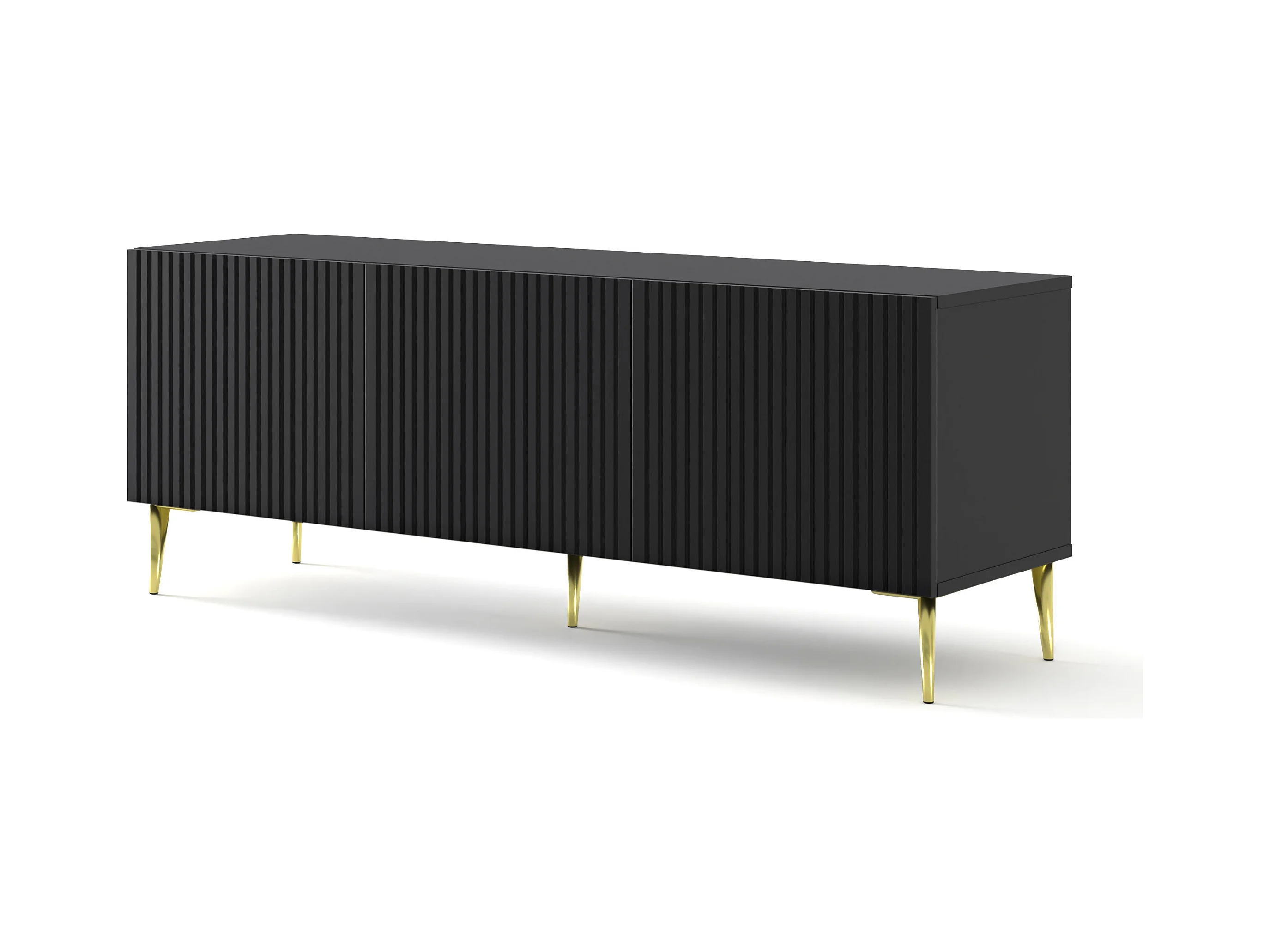 Meuble TV Ravenna B 150 cm MDF usiné 3D avec pieds épingles, finition plaquée