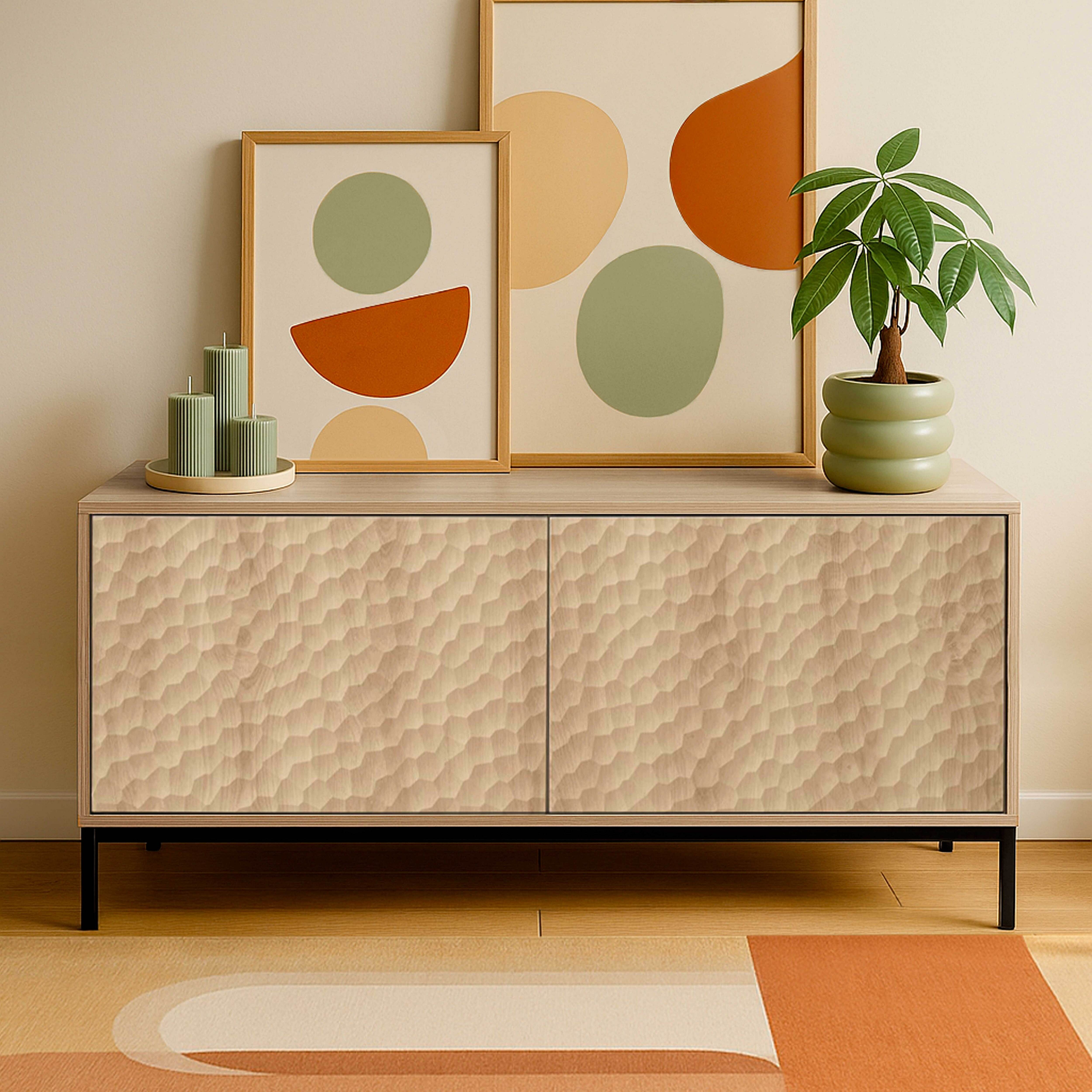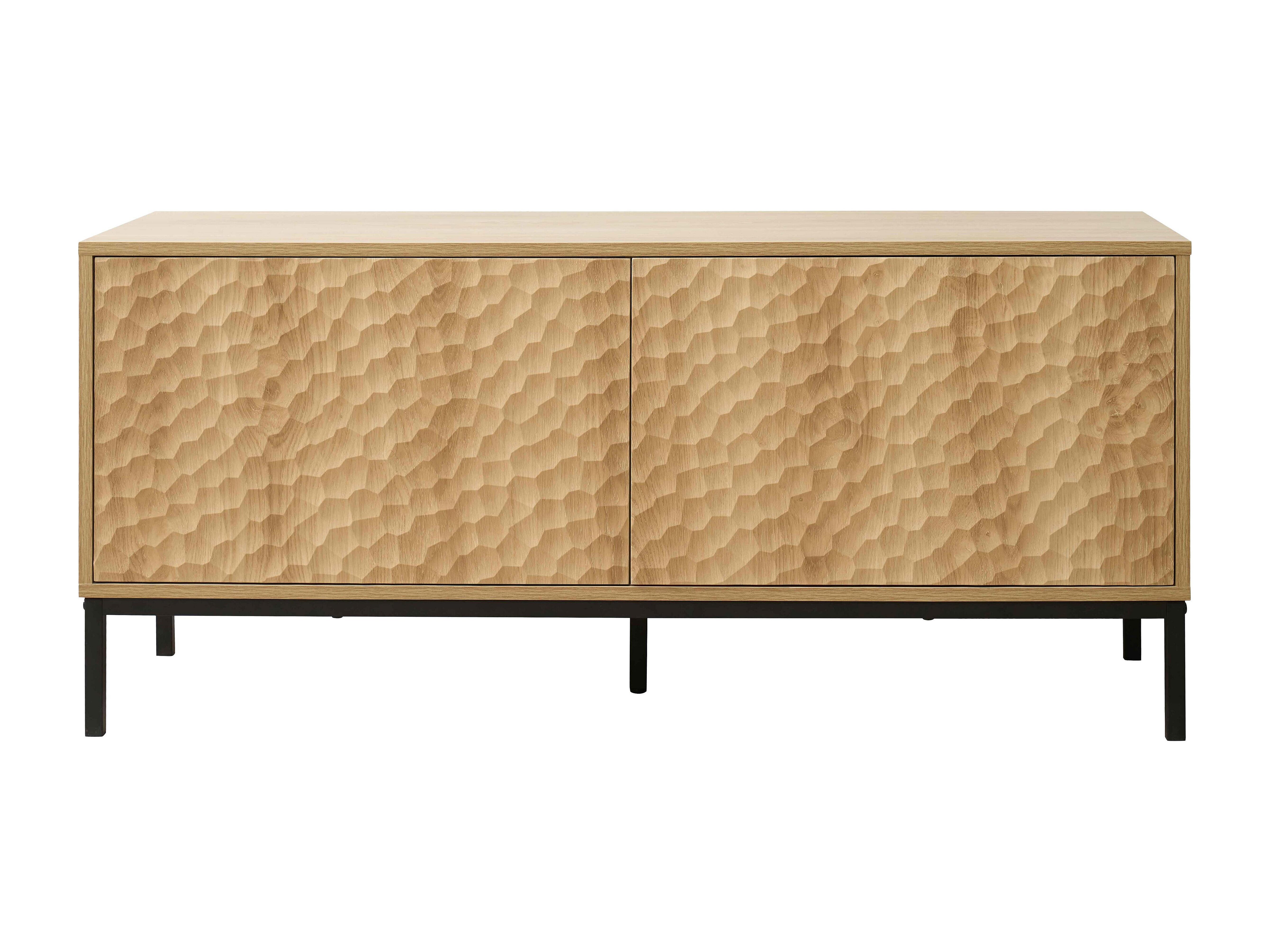 Meuble TV 2 portes en acier et MDF décor mélaminé 150 cm beige
