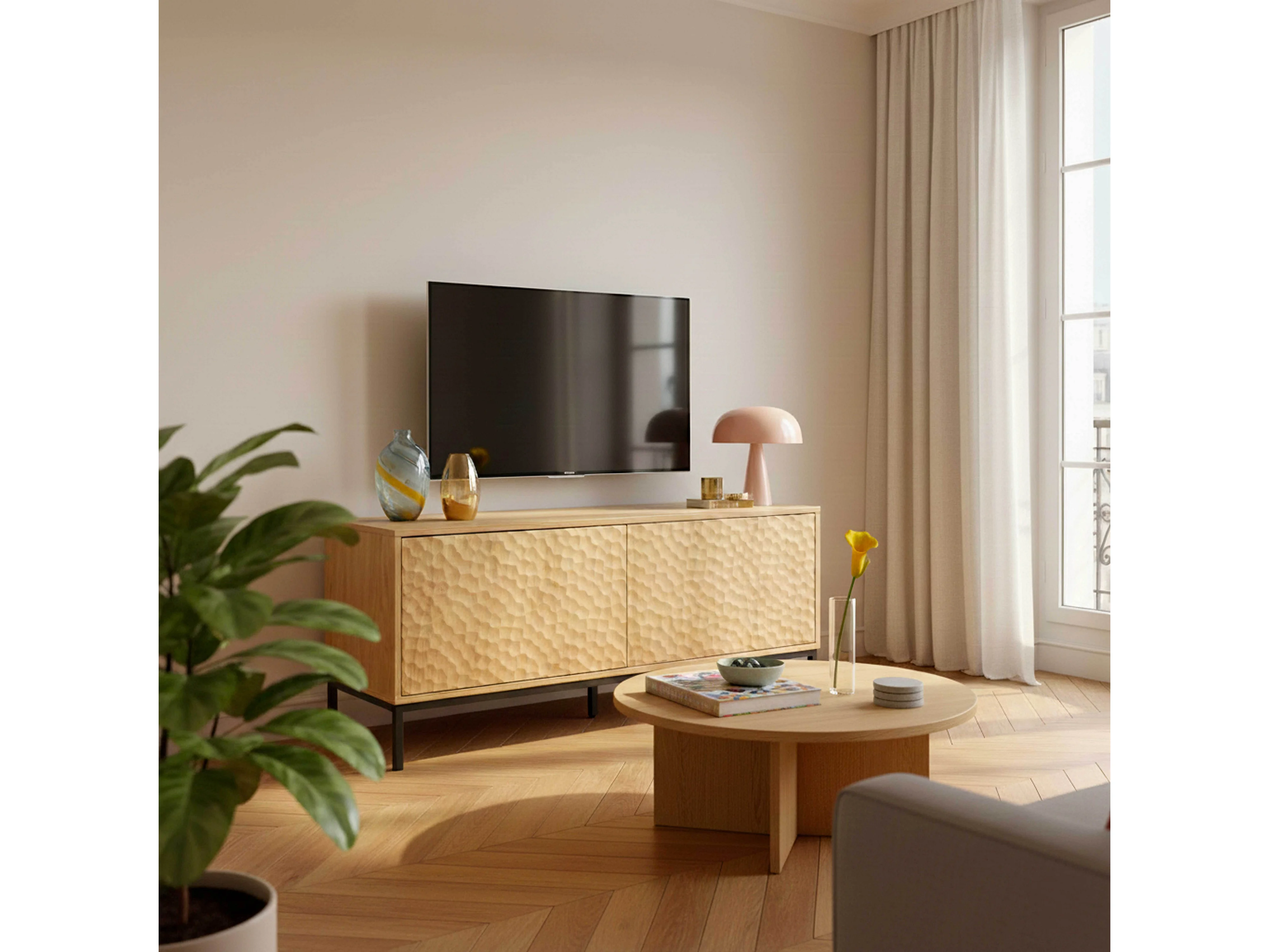 Meuble TV rectangulaire 2 portes L160 cm bois clair