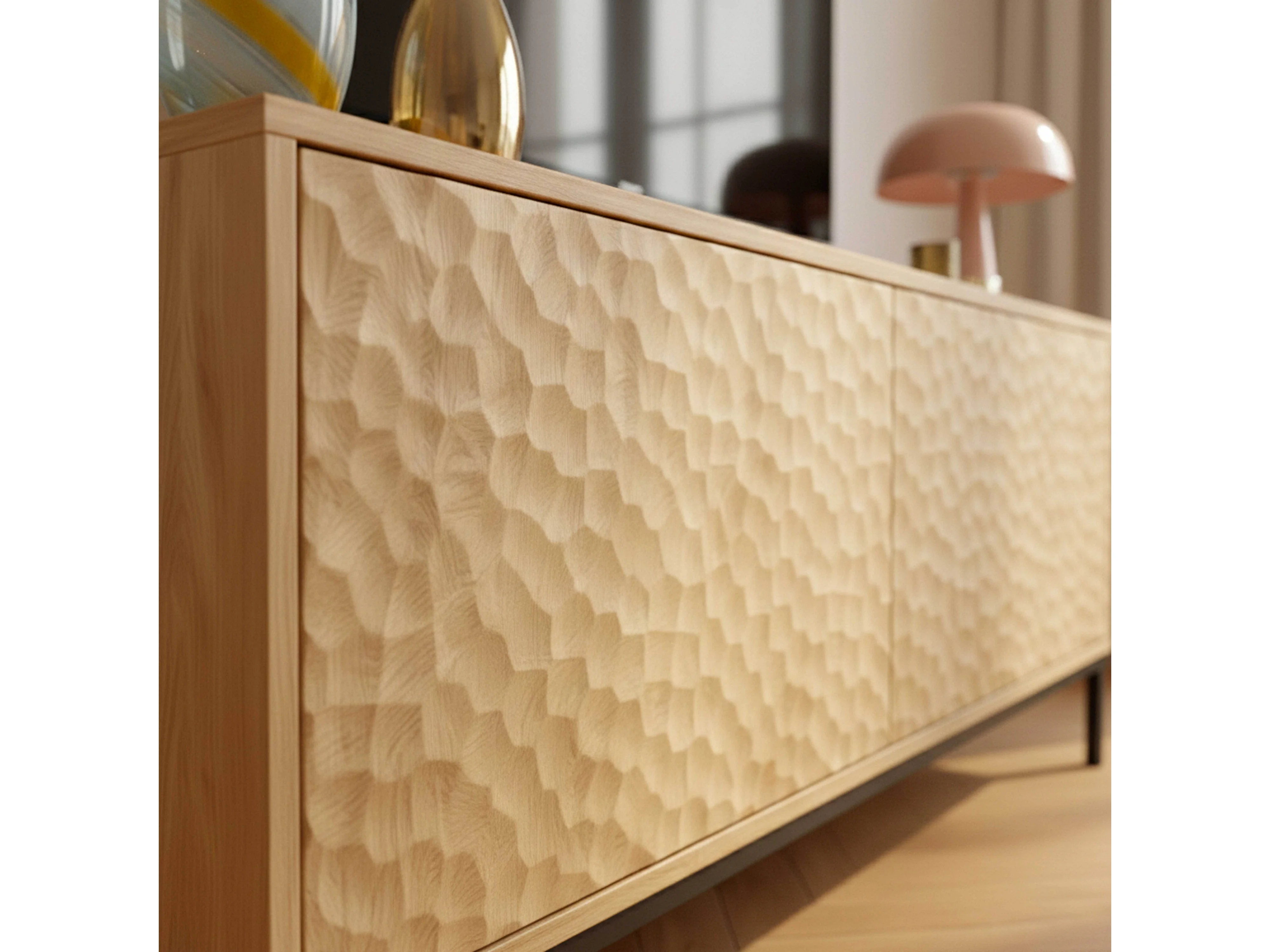 Meuble TV rectangulaire 3 portes L200 cm beige