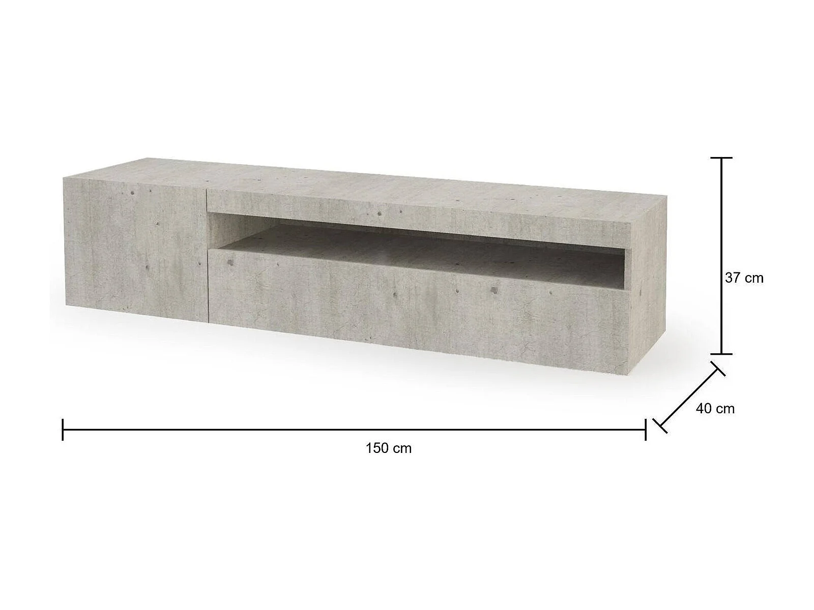 Meuble TV Roberto, Buffet bas de salon avec 2 portes, Base pour meuble TV, 100% Made in Italy, 150x40h37 cm, Ciment, avec lumière LED