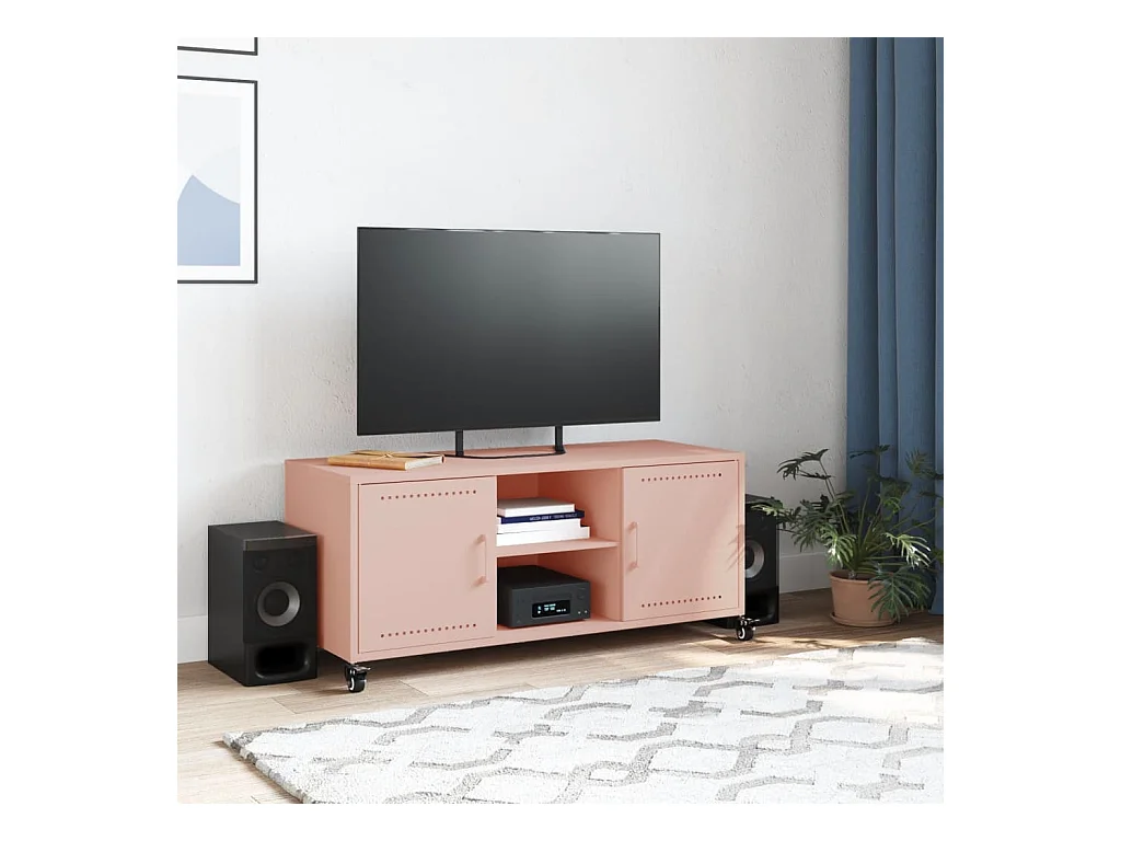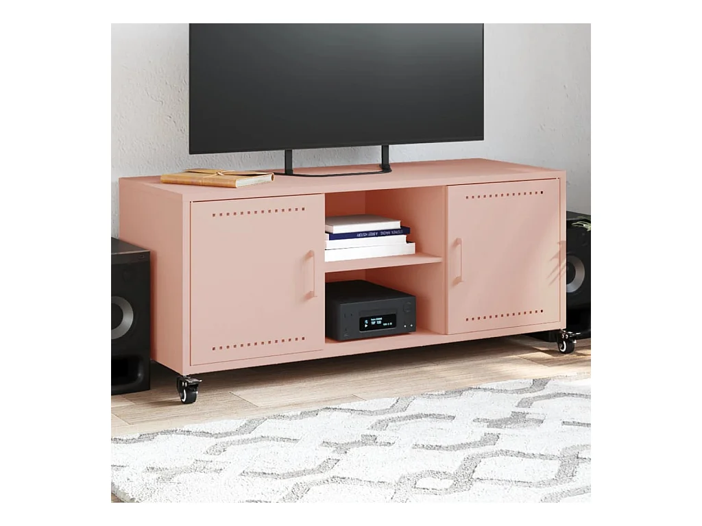 Meuble TV rose 68x39x43,5 cm acier laminé à froid