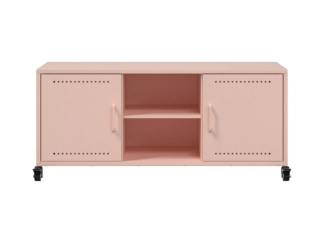 Meuble TV rose 135x39x43,5 cm acier laminé à froid