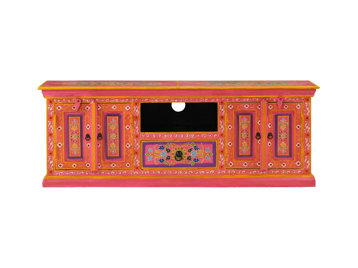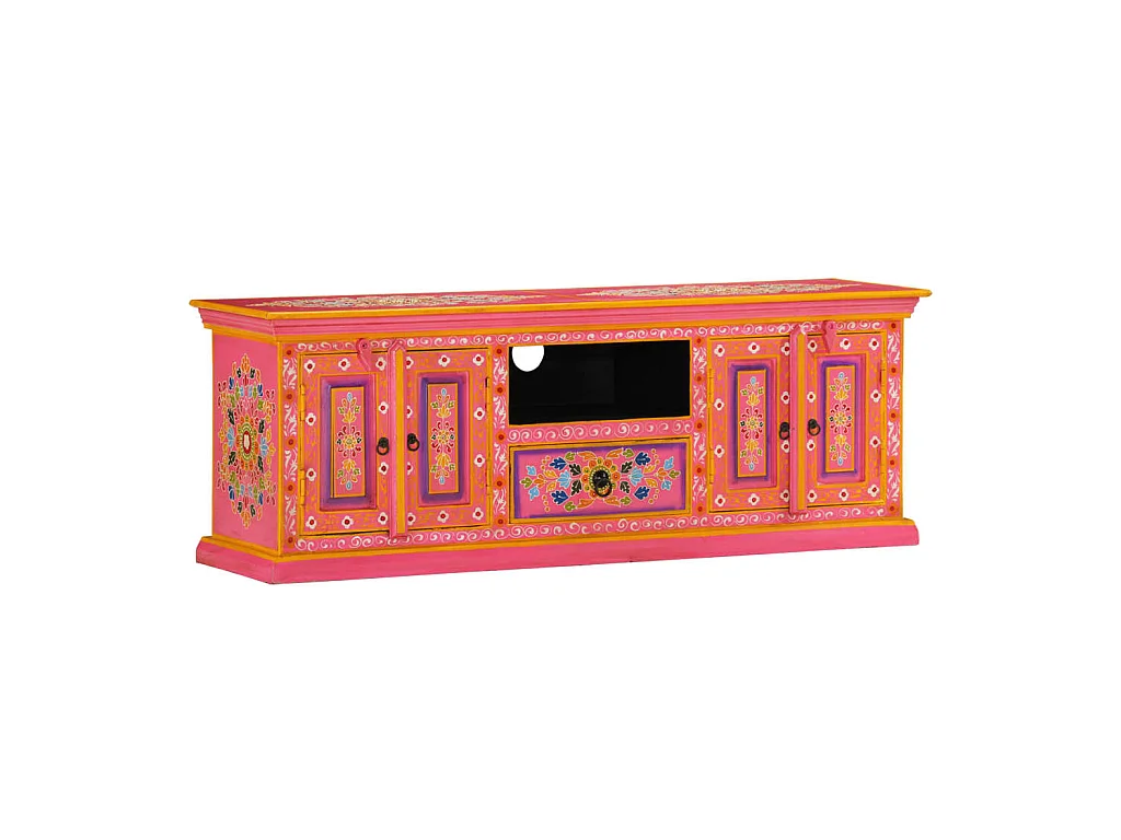Meuble TV rose 110x30x40 cm bois massif de manguier BE32750