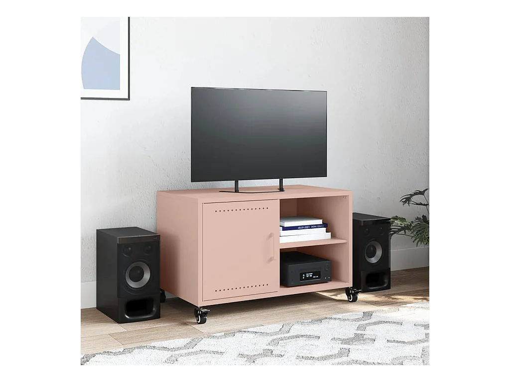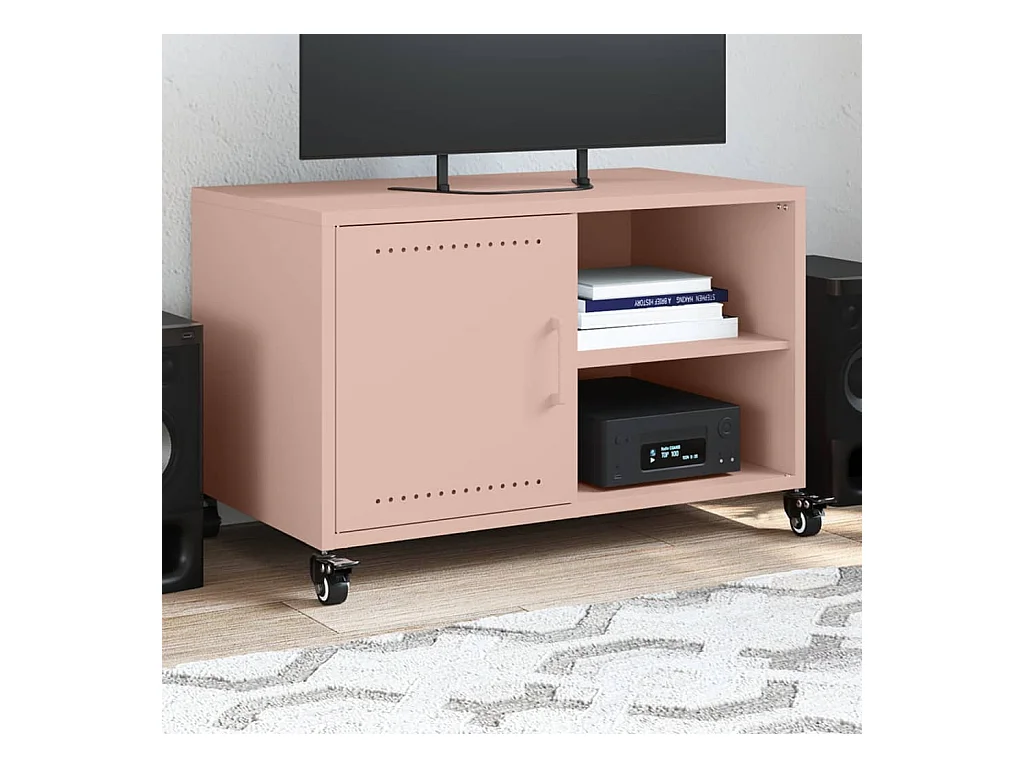 Meuble TV rose 68x39x43,5 cm acier laminé à froid