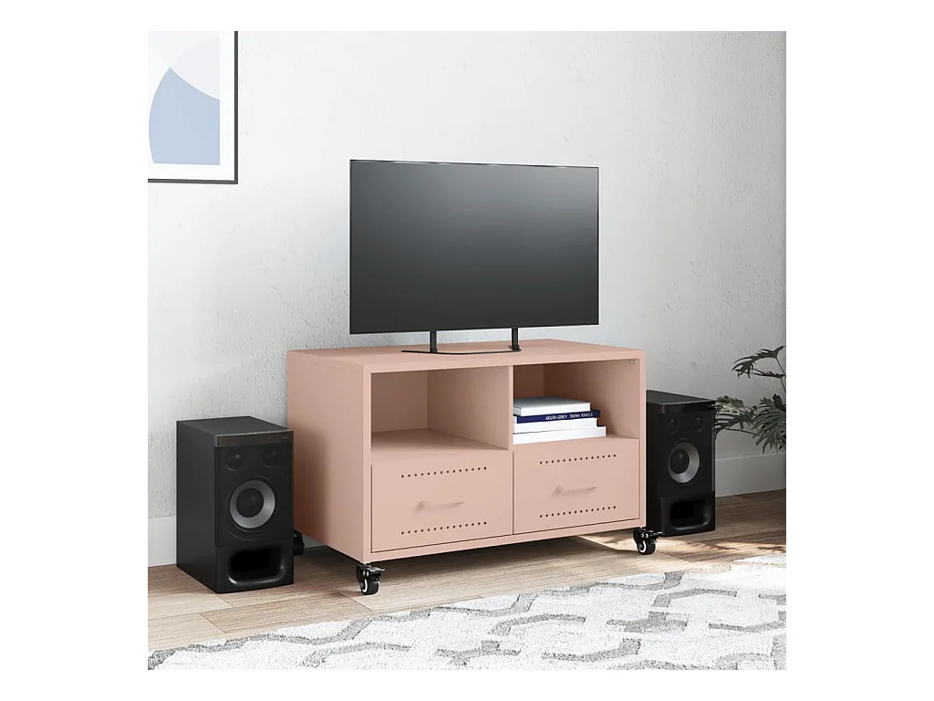 Meuble TV rose 68x39x43,5 cm acier laminé à froid