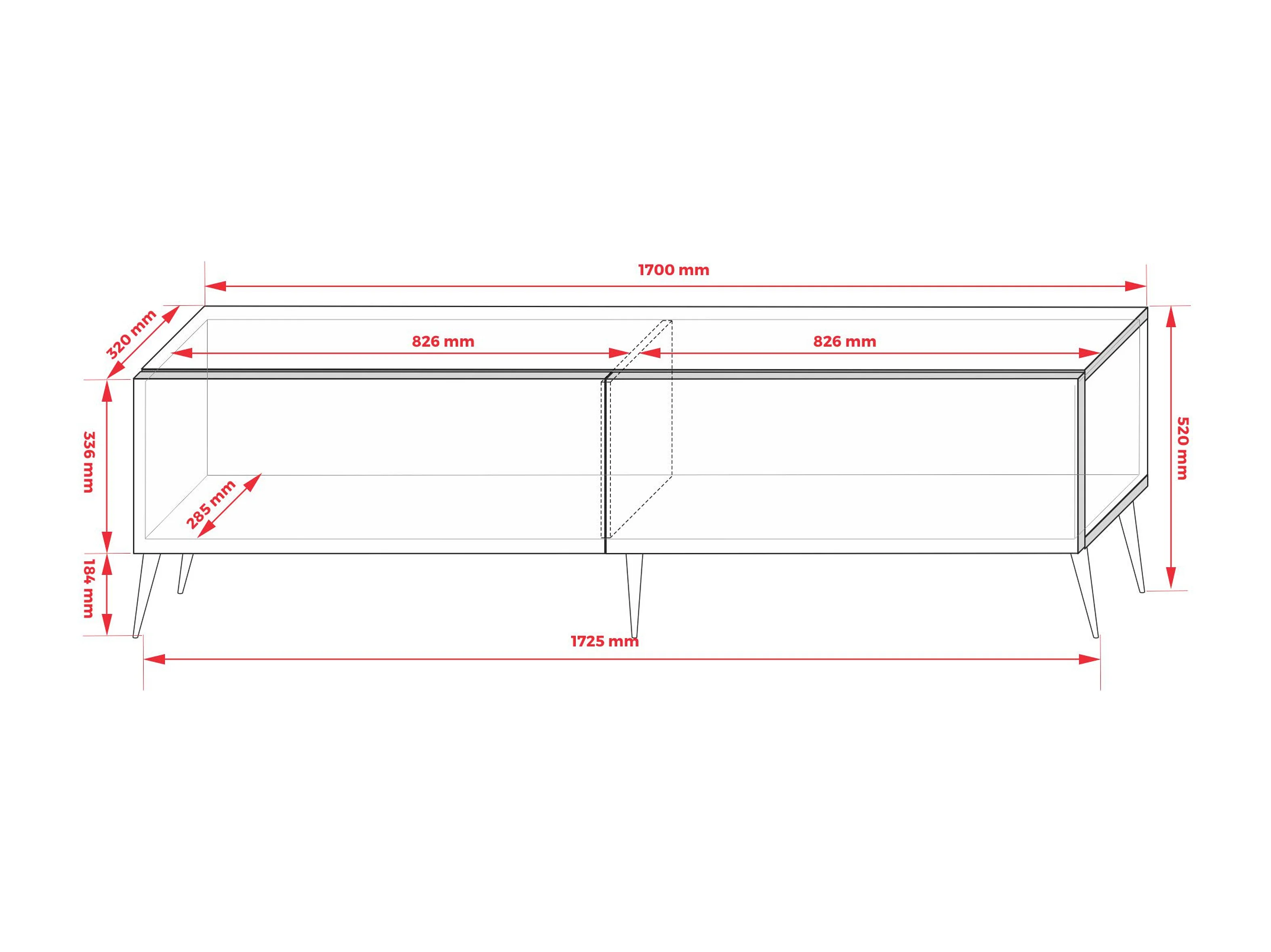 Meuble TV : Rouge Brique, 170 x 52 x 32 cm, pieds dorées